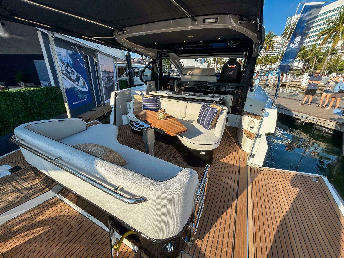 With twin Yanmar 370 hp inboard engines, the Gran Turismo 40 delivers thrilling speeds paired with a helm console of masterful ergonomics. Whether you’re on an open-throttle run to your local spot or on a lazy champagne sunset cruise, the smooth ride and perfect layout will never cease to amaze both captain and guests.