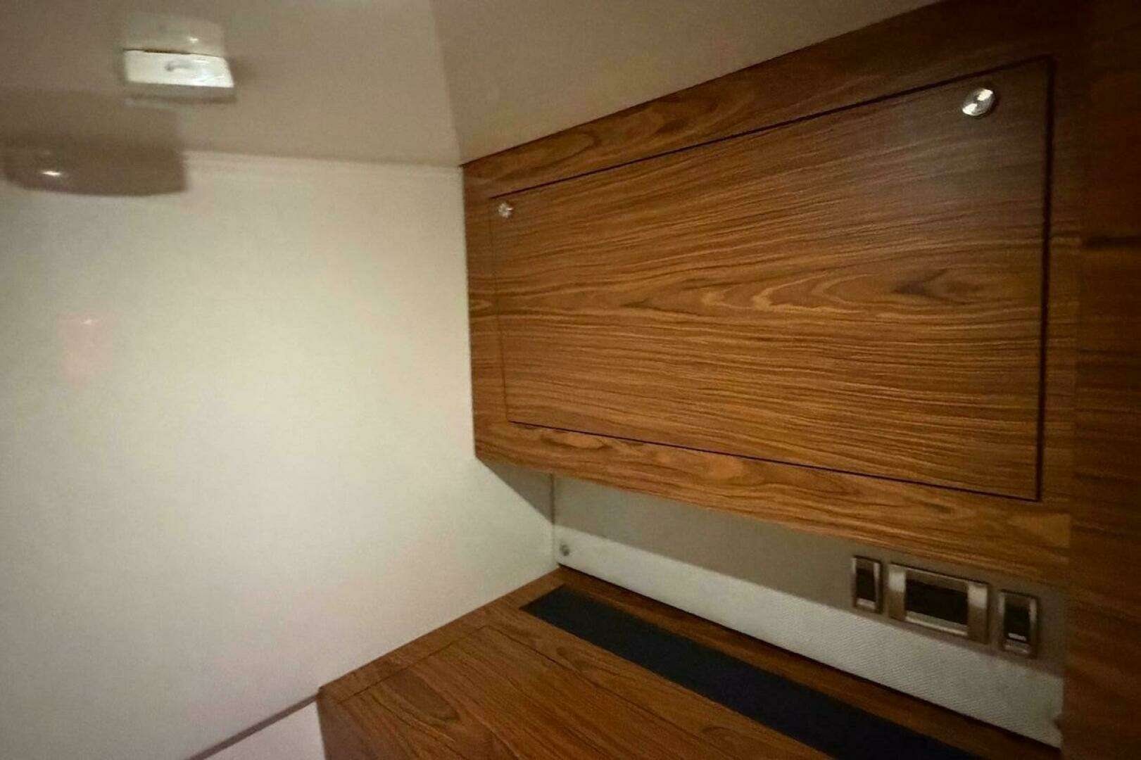 - Master stateroom forward – port side vertical cabinet with shelves and light