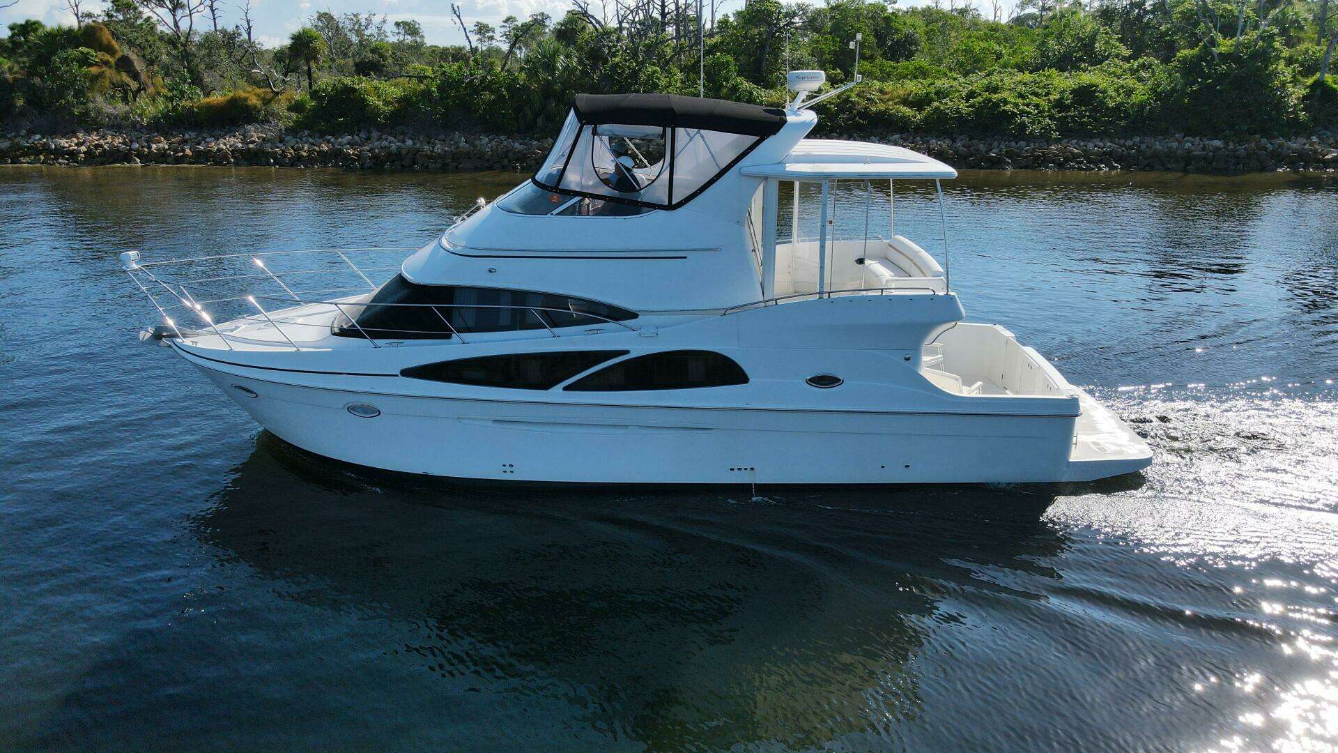 The 2005 Carver 41 Cockpit Motor Yacht is a midsize cruising motor yacht that blends spacious live-aboard comfort with a layout well suited for entertaining or water-oriented recreation. Built from 2005-2007, it features a modified-V fiberglass hull with a shoal draft of about 2 ft 7 in. making it p