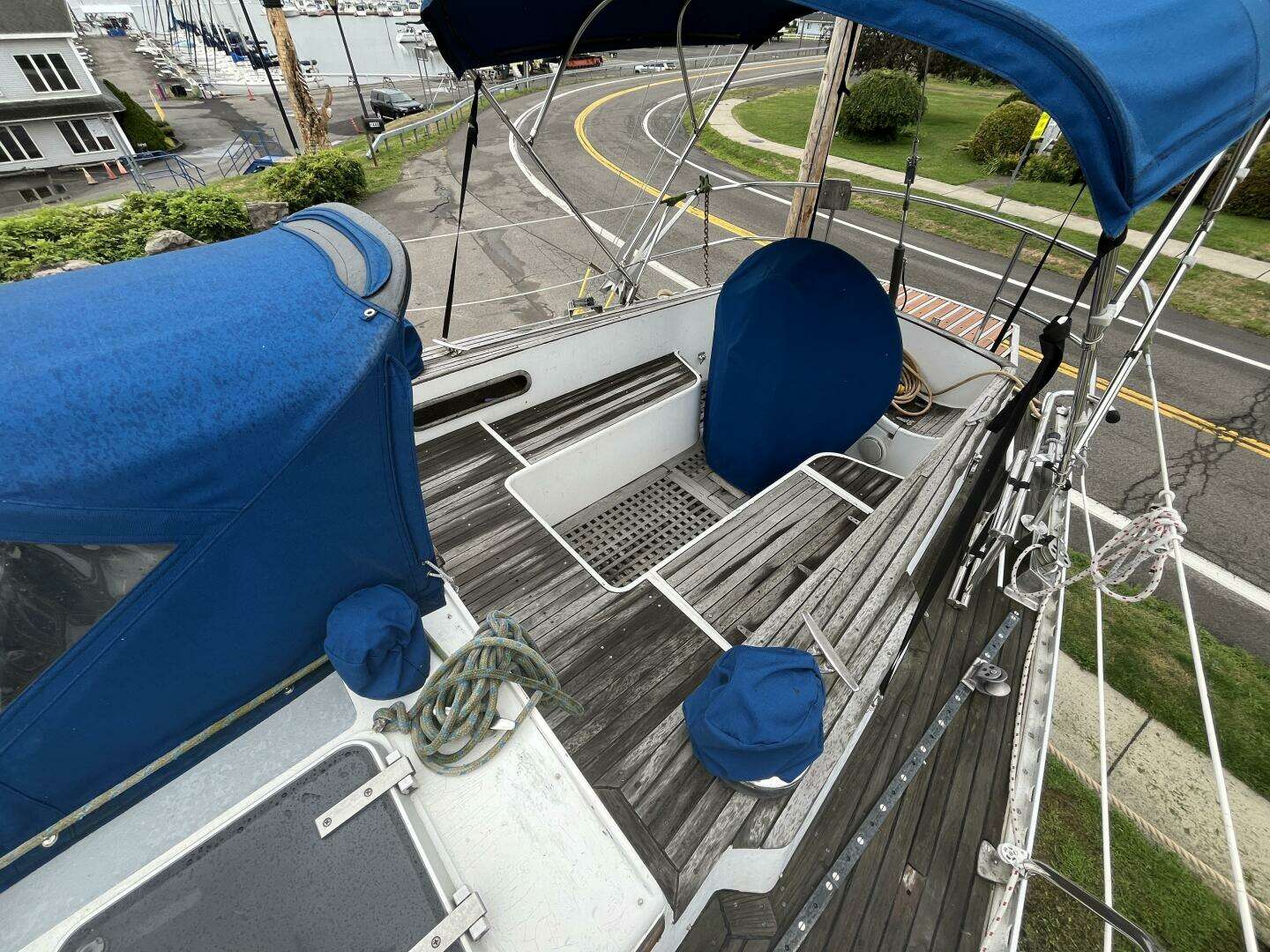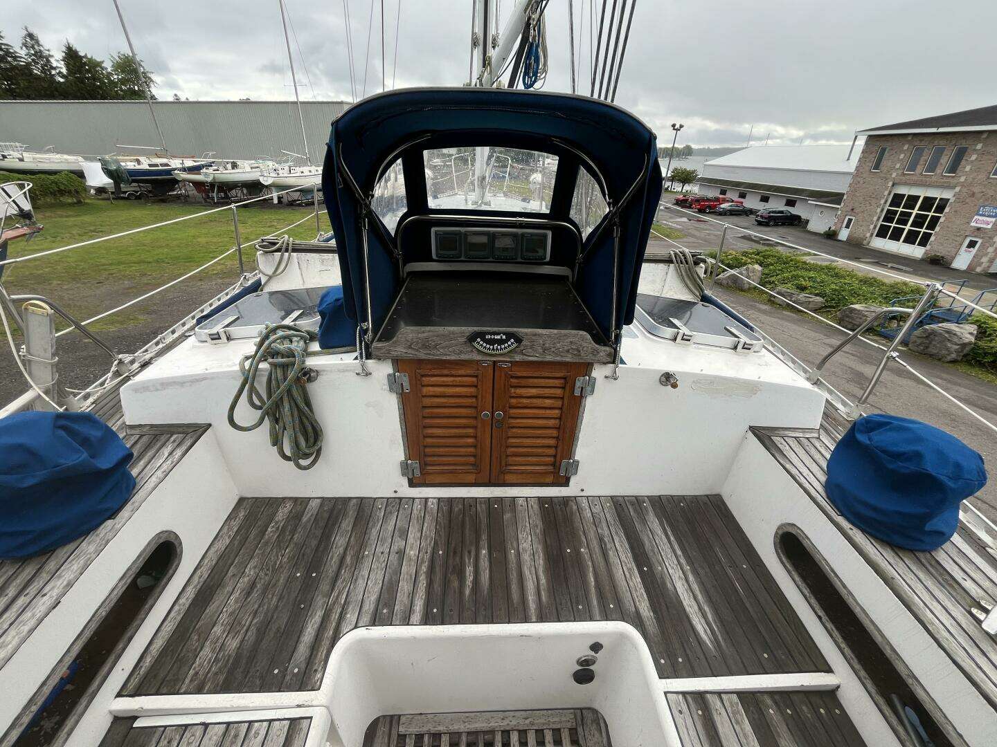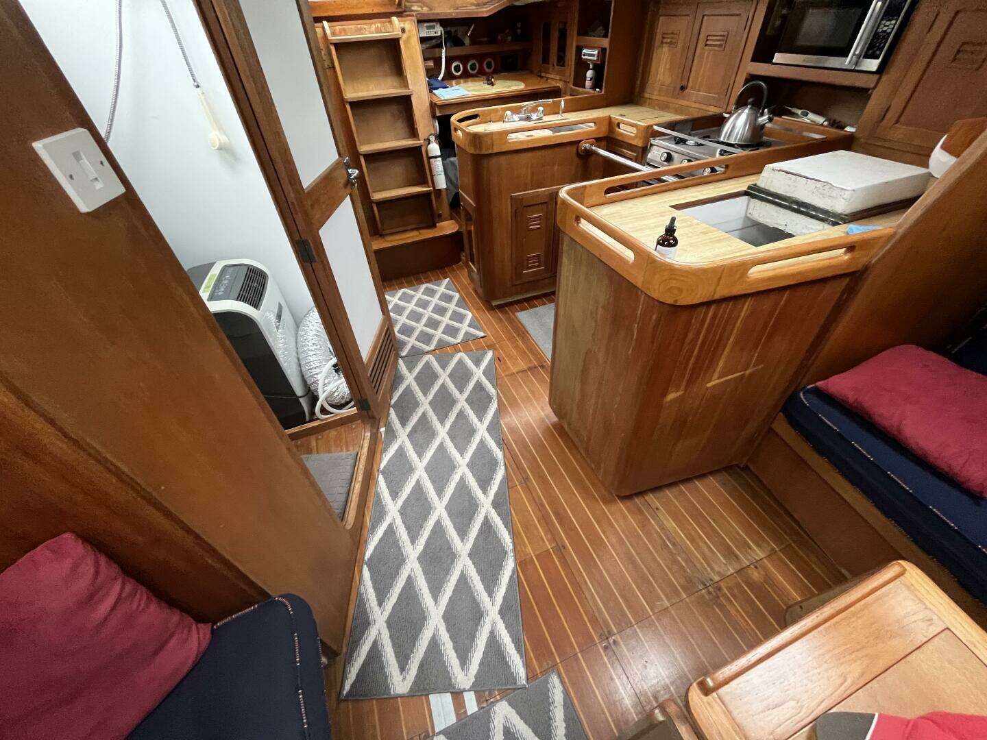 - Custom made teak cockpit table with Cheoy Lee inlay