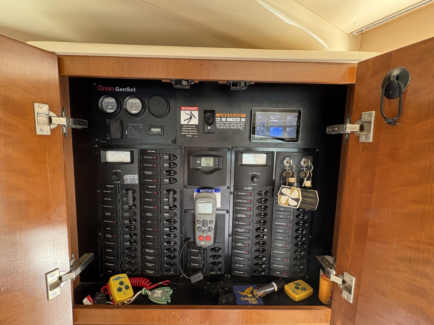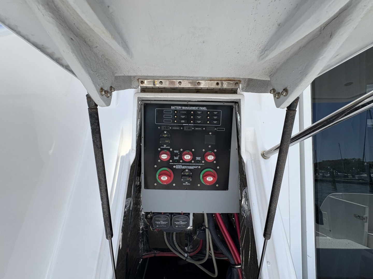 The vessel features a modernized electrical system with upgraded lithium battery technology and a Victron inverter/charger setup for reliable onboard power management.