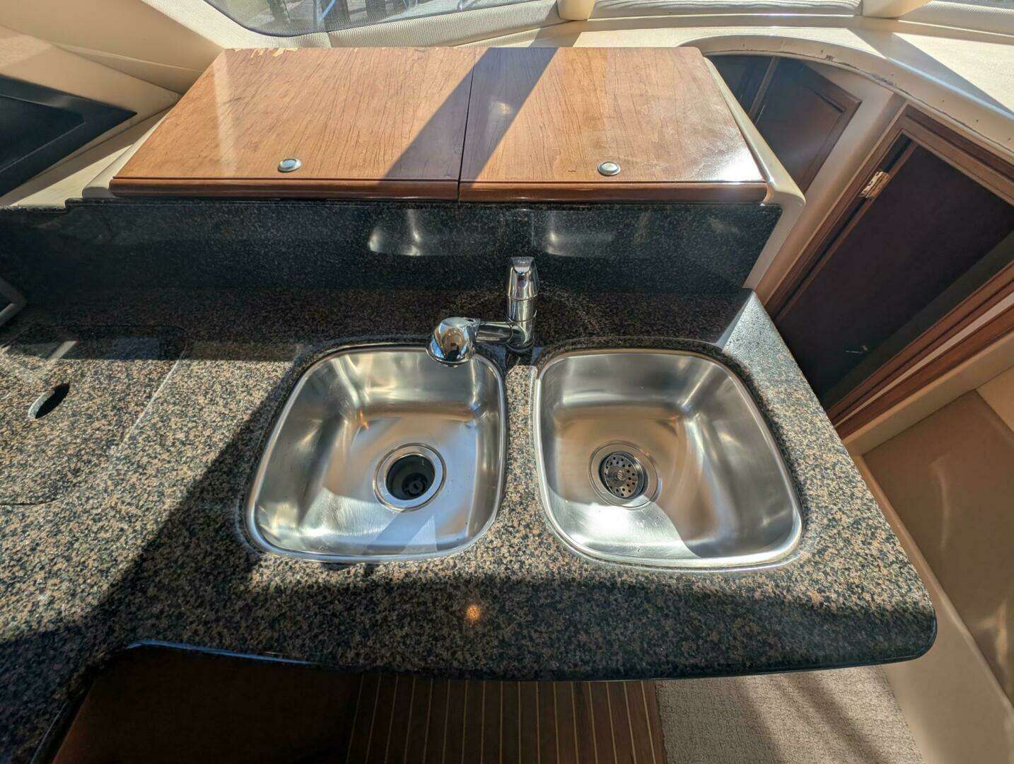 The 2006 Meridian 411 "Mother Ocean" is well maintained example of the very popular Meridian 411 Sedan, featuring great overnight accommodations for four, and with the convertible dinette, she can sleep six. She offers a spacious master stateroom with ensuite head, an entertainment system with 15-inch LCD TV, a standard pillowtop innerspring mattress and good closet and drawer storage. There is a guest stateroom, with ensuite head, a pillowtop innerspring mattress and 12-inch TV. Like all Meridian yachts, the wide-open salon features premium gloss cherry wood finish, cut-pile carpeting, a raised dinette, and a layout that has living-room-style seating for everyone. The large glass windows in the salon offer excellent natural lighting and great outside views. The generous storage guarantees maximum convenience for lengthy stays on board. The broad side decks and molded-in steps between cockpit and bridge ensure that a couple can handle this yacht with ease. The bow and stern thrusters make this easy-to-handle yacht, one of the best and most versatile cruising yachts in its class. Please call the listing broker to discuss "Mother Ocean", or to schedule a showing.