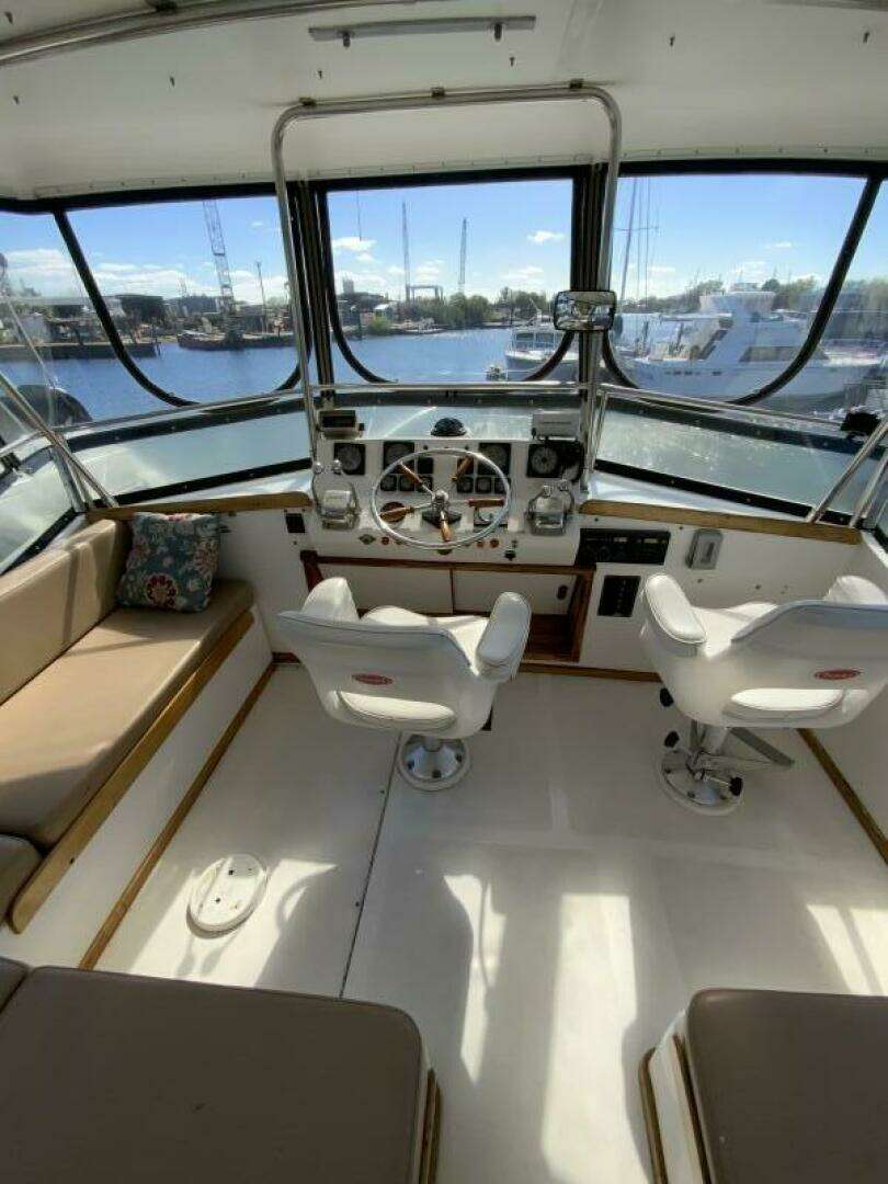 Powered by twin 275HP Ford Lehman turbo diesel engines with approximately 2,600 hours, this yacht delivers legendary diesel efficiency and durability. Whether cruising the Intracoastal, crossing open stretches, or docking in tight marinas, this vessel is equipped to handle it all with confidence.