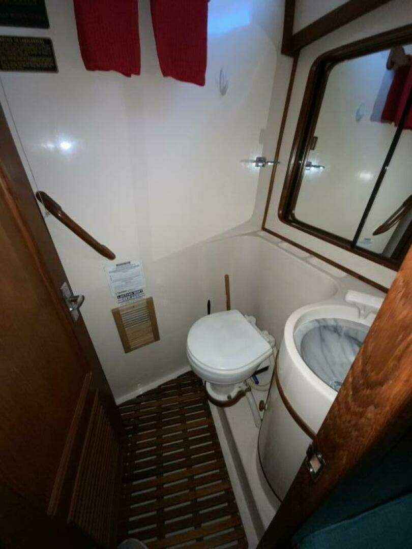With two heads, including forward and aft heads with shower stall, this yacht offers excellent convenience for cruising couples, families, or guests.