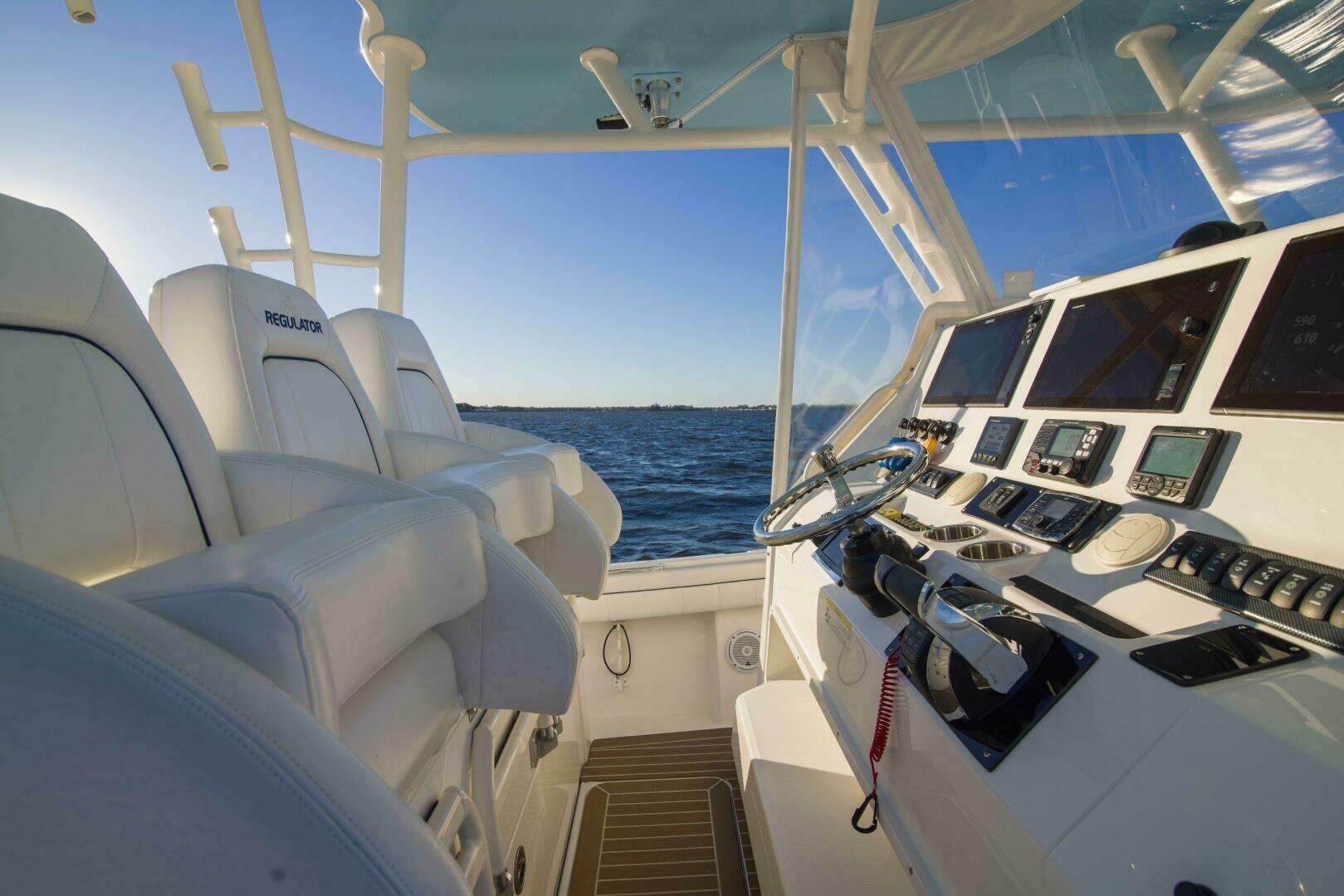 2016 41 Regulator “Wound Up II” is new in the market and is as clean and ready to go for season as it gets! “Wound Up II” originally spent its life in Massachusetts winterized most of the year prior to being shipped to Florida in December 2022. Spec’d with every option in mind to allow for a simple family evening cruise or to run miles offshore chasing down the hot fishing bite. Repowered with 2020 Mercury Verado 400’s, this boat runs great with plenty of torque and much quieter engines while at cruise speed. Call today to set up a showing!