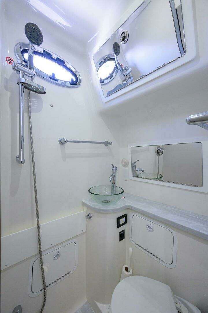 - Lewmar tempered glass Three sided windshield with electric window vent and fresh water wash windshield wiper