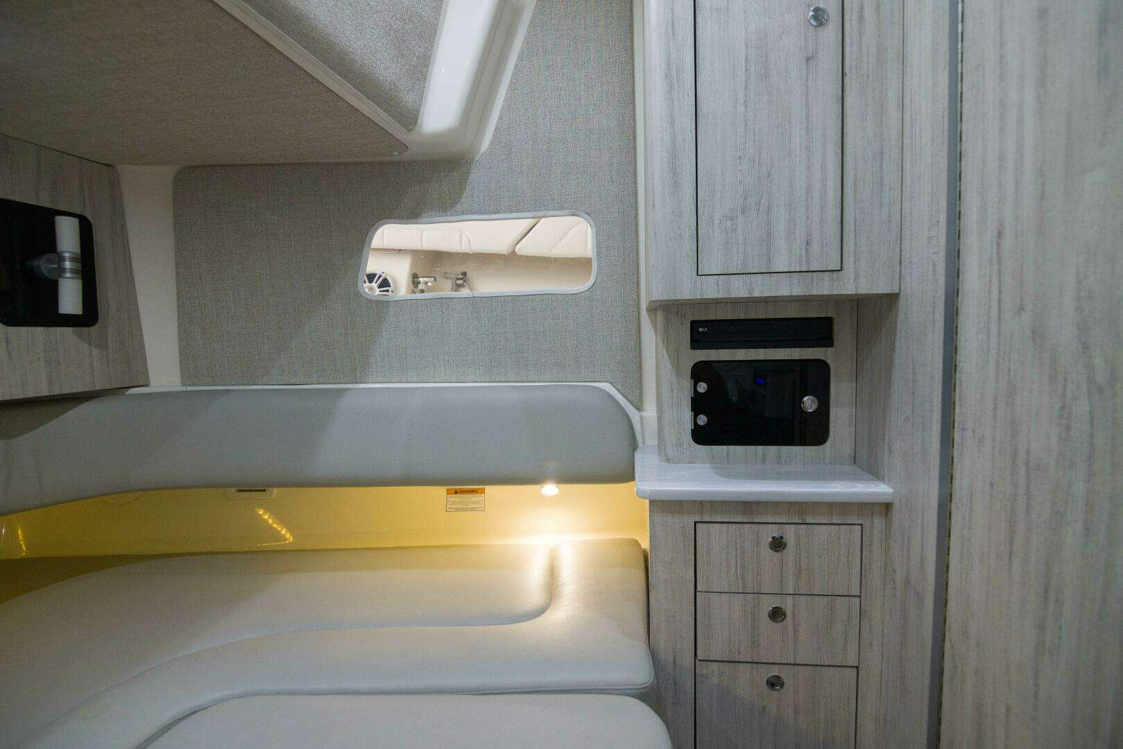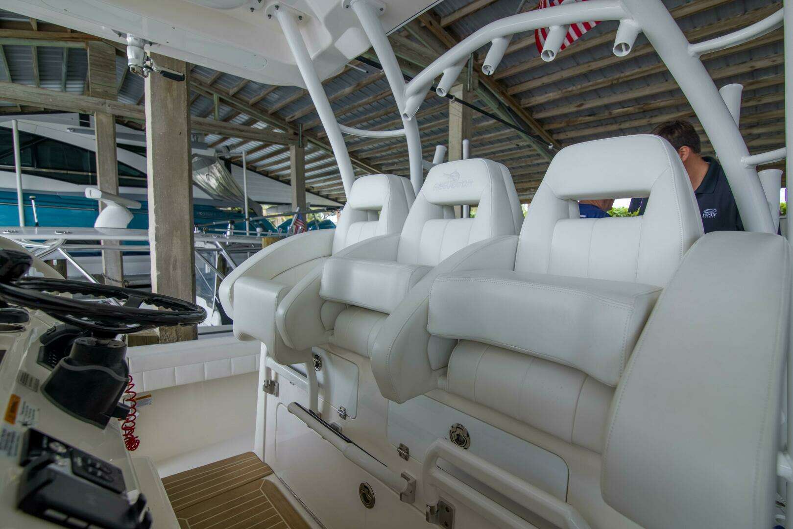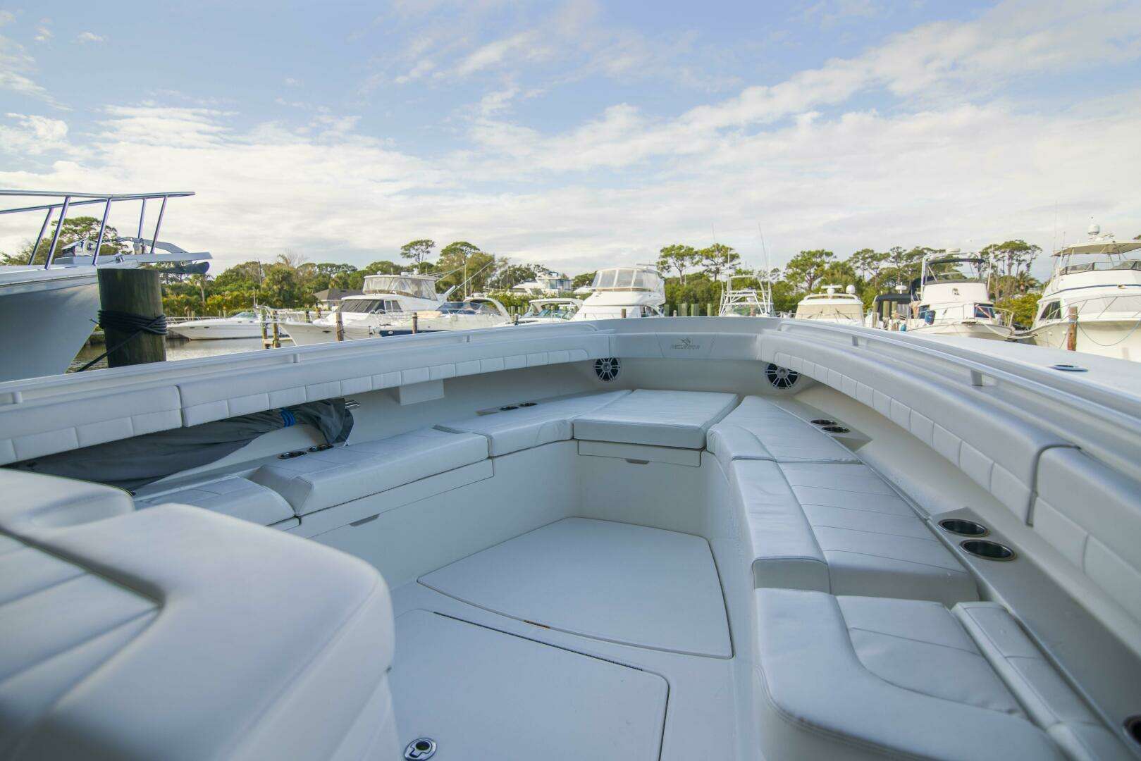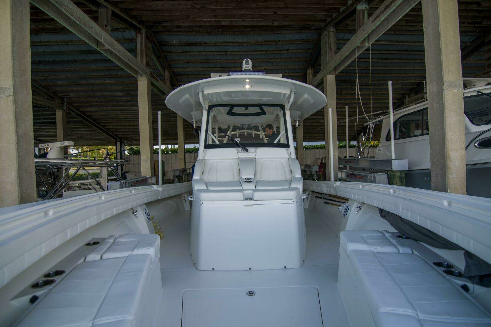 - Forward console lounge seat with built in insulated cooler