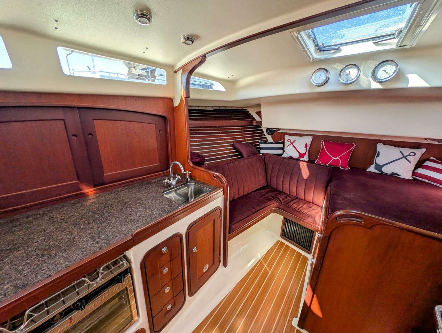 - High-quality interior: The boat features a spacious interior with high-quality finish work, designed for comfortable cruising for a couple on long-distance trips.