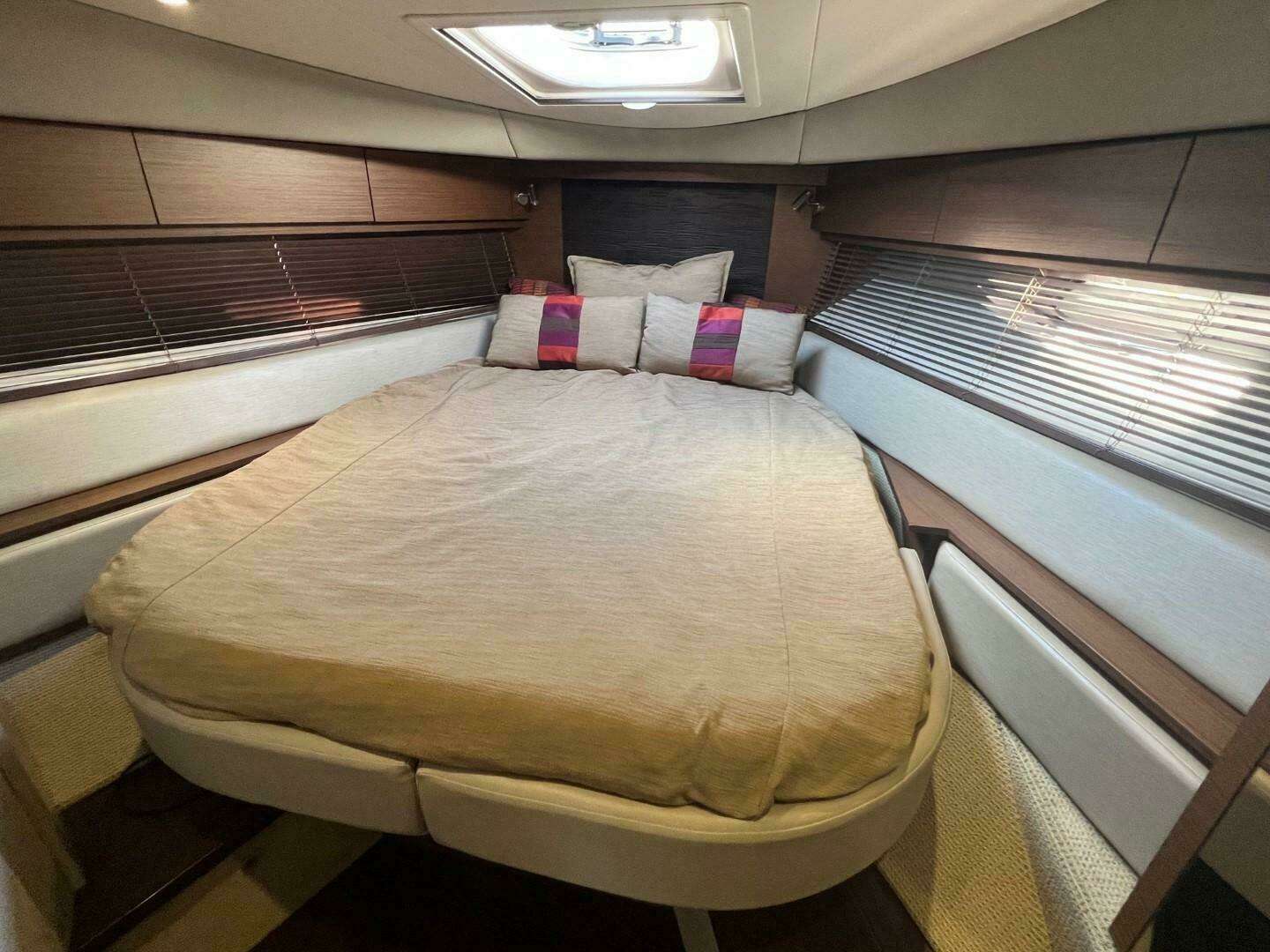 Standard innerspring mattress in master stateroom.