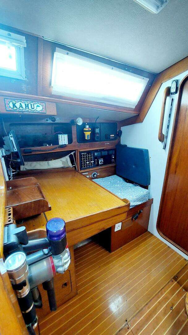 Kahu was built in 1984 and launched in 1986 by Marine Projects in Plymouth, England. Designed by David Thomas as a racer cruiser strong enough to the harsh conditions in British waters. Her interior is hard to beat for its practical voyaging layout and the design is notable for her manners under sail with her lightness and balance of the helm especially notable in heavy weather and to windward.