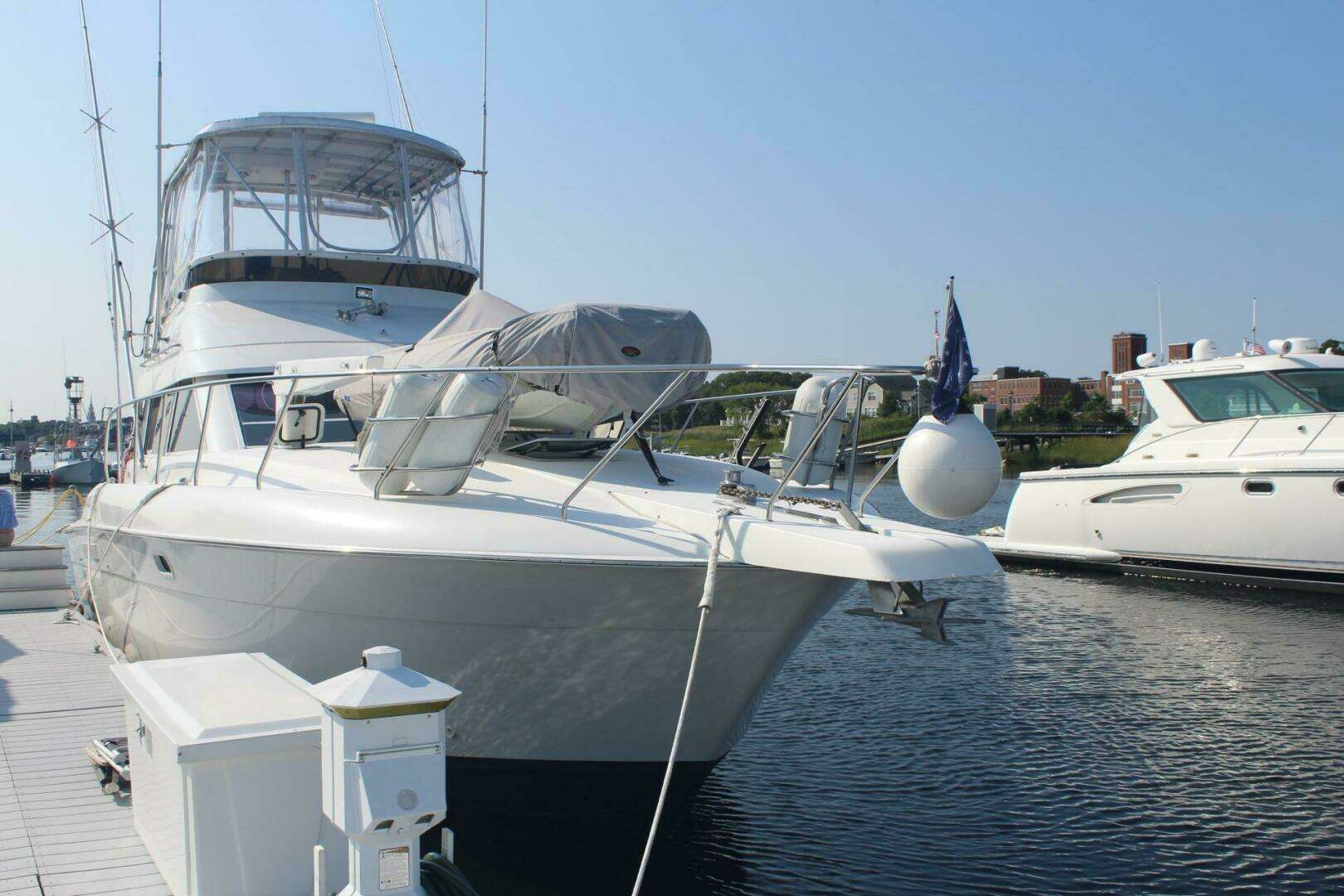 Introducing "Soggy Dollars" stunning 1996 Silverton 41 Convertible, a remarkable vessel that combines elegance with performance. With an overall length of 46 feet, " Soggy Dollars" boasts a sleek fiberglass hull, ensuring durability and a smooth ride.