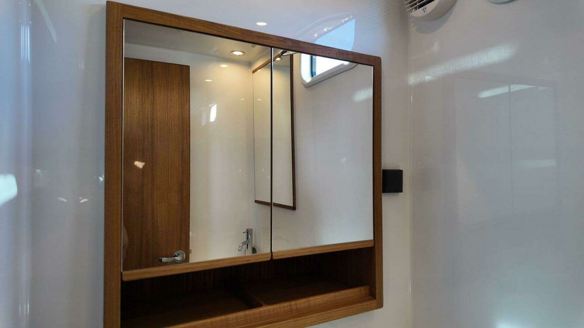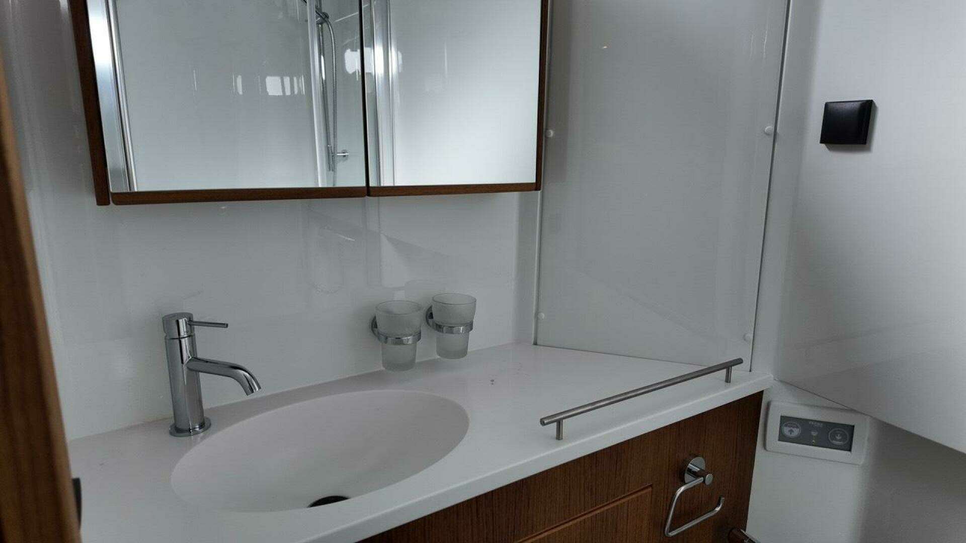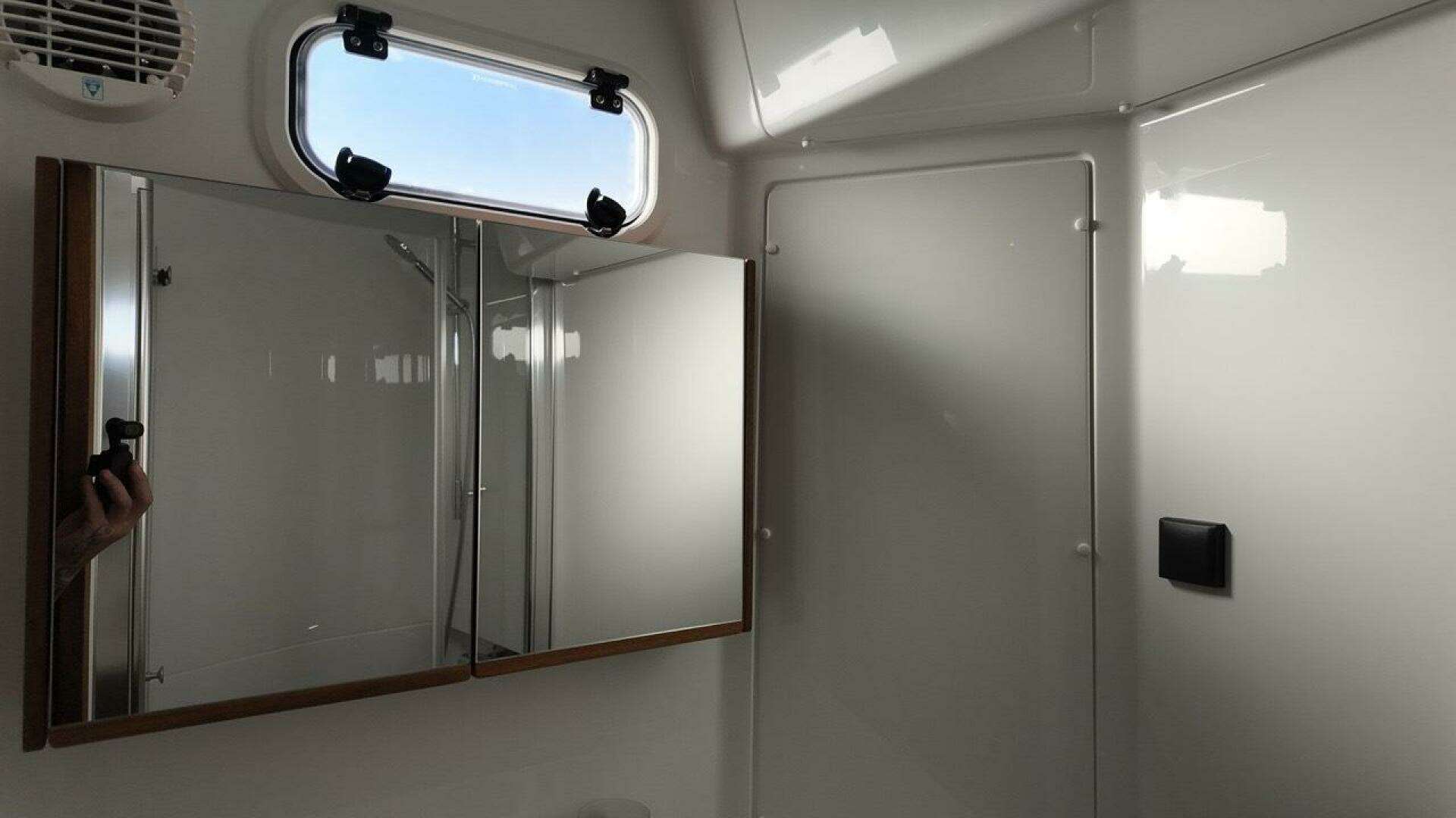 - Shower with glass shower doors in fore cabin toilet