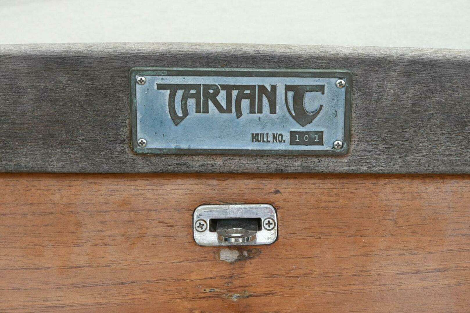 Some cruising boats are at their best in the dealer's parking lot. Not the Tartan 4100, which is at her best either romping into a stiff sou'wester or anchored sedately in your favorite harbor. In either situation you'll appreciate the mobility of the T-shaped cockpit, the clear visibility afforded from behind the 44-inch wheel, and the fact that the hefty Harken 53 self-tailing chrome primary winches are located within reach of the helm. Wide, flat sidedecks, effective nonskid surfacing, and extra-high 27-inch lifelines make working on deck safe. And traditionalists won't be disappointed with the 4100's on-deck detailing; solid teak toerails and stern taffrail, a polished stainless-steel stemhead fitting, and special mooring chocks with built-in rollers are as functional as they are beautiful. The Tartan 4100 turns 41 feet into the ultimate getaway space. The master stateroom features a queen-size berth with hanging locker, shelves, clothes stowage, and in-suite head with shower. The salon, with a varnished drop-leaf centerline dinette table that can handle eight guests for dinner or drinks, has a built-in entertainment center. The L-shaped galley features a top- and front-loading icebox, dual 9-inch-deep stainless-steel sinks, and a 3-burner gimbaled stove with oven and broiler.