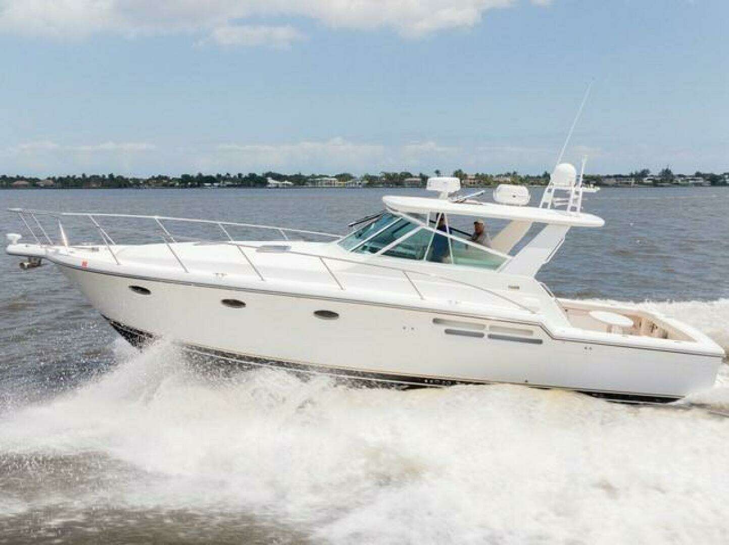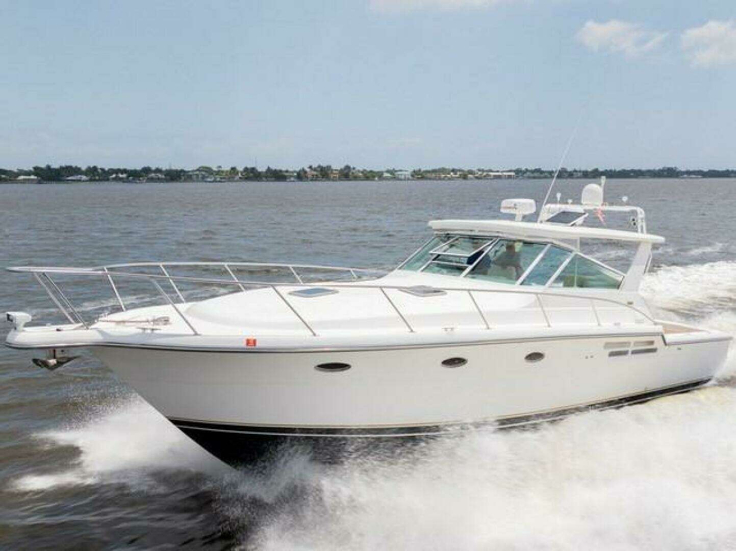 This 2000 - 41' Tiara Open represents a prime example of the popular 41' Express model from Tiara. With her many recent upgrades performed by her current owners and a well-maintained engine room, she is a must-see. Her pristine interior provides all the comfort you'll need for offshore adventure or cruising the Bahamas. She includes a spacious salon and a well-equipped galley. The forward stateroom with a centerline island-style bed with storage underneath and access to the ensuite head and shower. The seating in the main salon folds down to make a very large second bed for guest with their own access to the head. With her large curved companion seat in the helm area and additional seating in the cockpit area, there is plenty of room for guests. The entire sole in the helm and cockpit area has brand new "All Water Customs Marine Flooring" and all-new vinyl seating as well. The electronics are younger Garmin plotters, Auto Pilot, and Radar with a Fusion Stereo system. The Caterpillar 3208 TIDA 435 HP engines are in good condition with only 1,800 hours and have had recent maintenance done to ensure their performance. Service records are available upon request. This is the way to acquire a low-priced diesel-engine coastal cruiser and make some dreams come true.