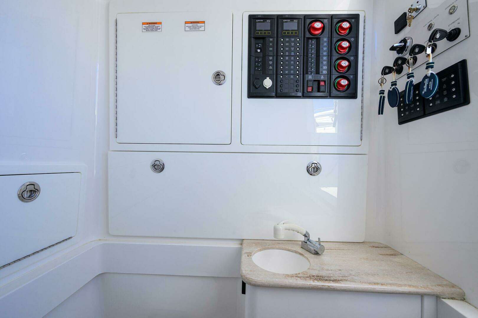 She's equipped with a Seakeeper, bow thruster, windlass, premium Garmin electronics, incredible sound system just to name a few. Every detail has been thought through, making this boat equally at home chasing big game or enjoying a weekend cruise.