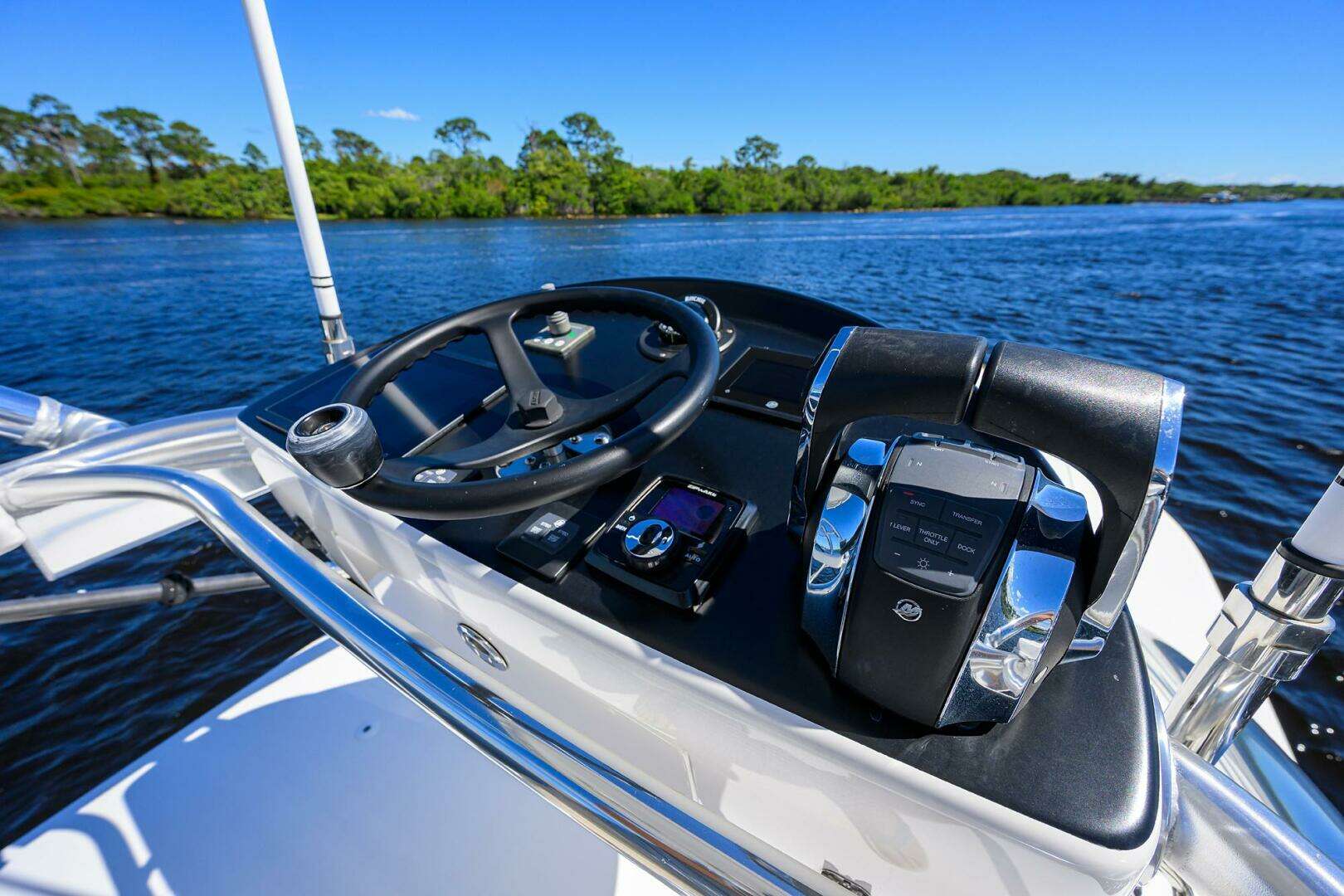 The motors have been meticulously maintained, 300-hour services completed along with full boat servicing, and Extended Platinum Warranty until 10/2/2026.