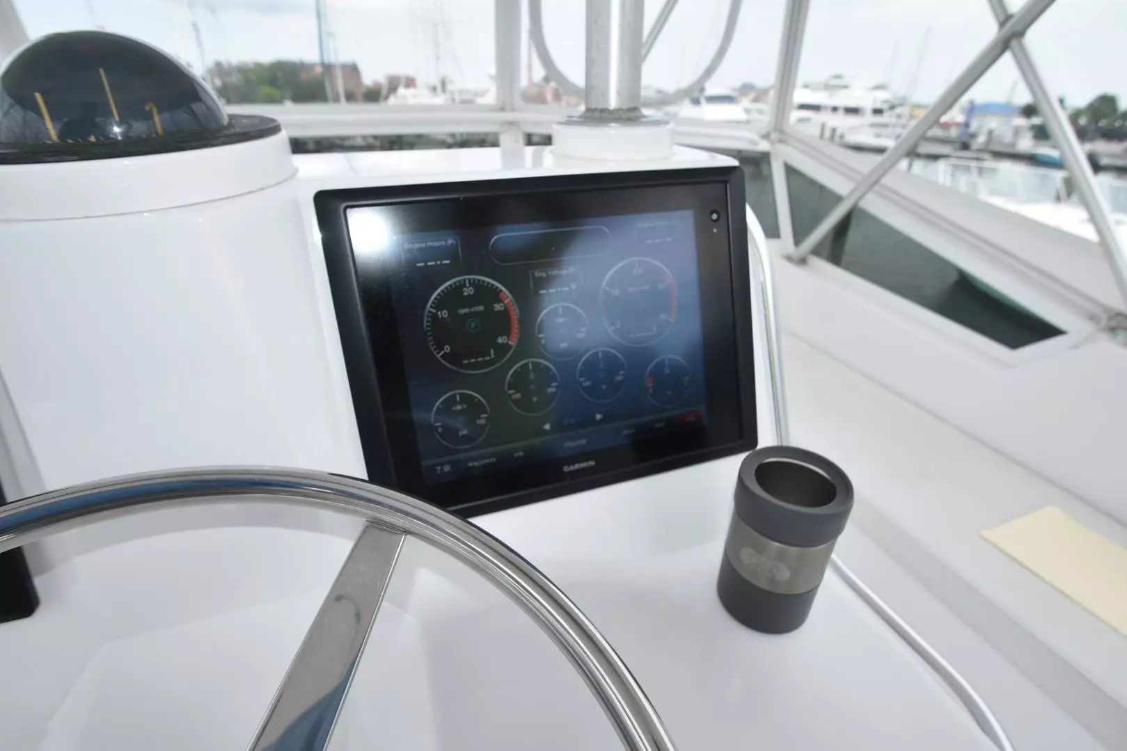 - Stainless Steel 3 spoke steering wheel with teak center button