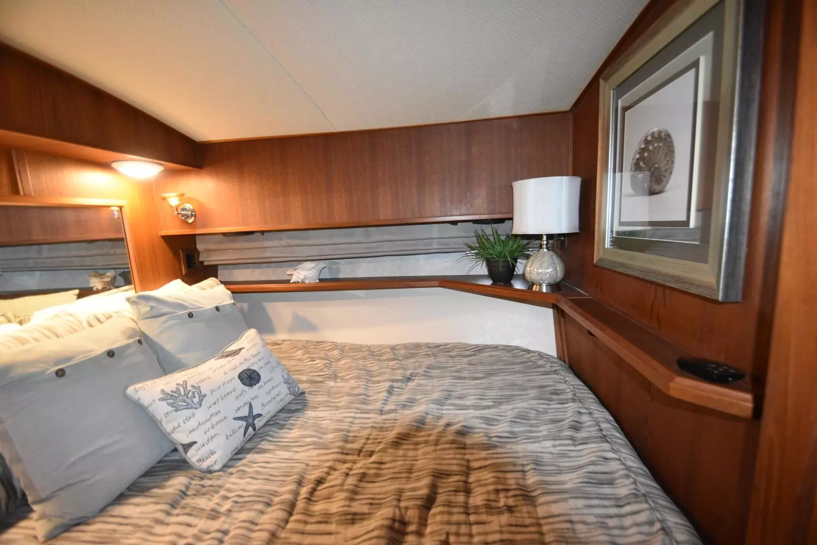 BEAUTIFUL,This is likely to be the nicest boat of this age that you will Ever Find. UPGRADES GALORE, She has been completely updated from Bow to stern and Top to Bottom. New Hardtop, all new Electronics, Electronic Controls, Electronic Cockpit Controls are a very nice addition! Hull and topside paint job, Satin Teak interior that is stunning. Every light fixture, plumbing fixture, HVAC unit, upholstery and carpet, galley equipment too. Powered by twin Caterpillar 3208 TA's (375 hp each) for a 20 kt cruise and 26 kt top speed. Upgraded 50 amp shore power with Glendinning Cablemaster, new Bomar Hatches and Port lights also. This is the two stateroom layout, Be Sure to view the Virtual Tour to get a feel for the Incredible Condition of this vessel. Call for details