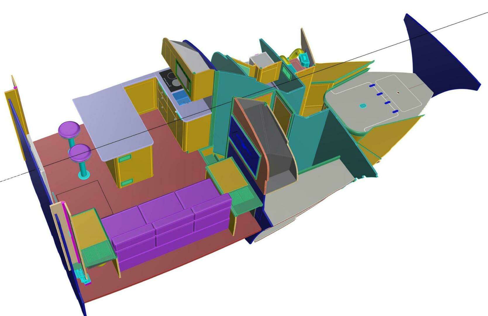- Fusion stereo system w/ speakers on bridge, cockpit and salon