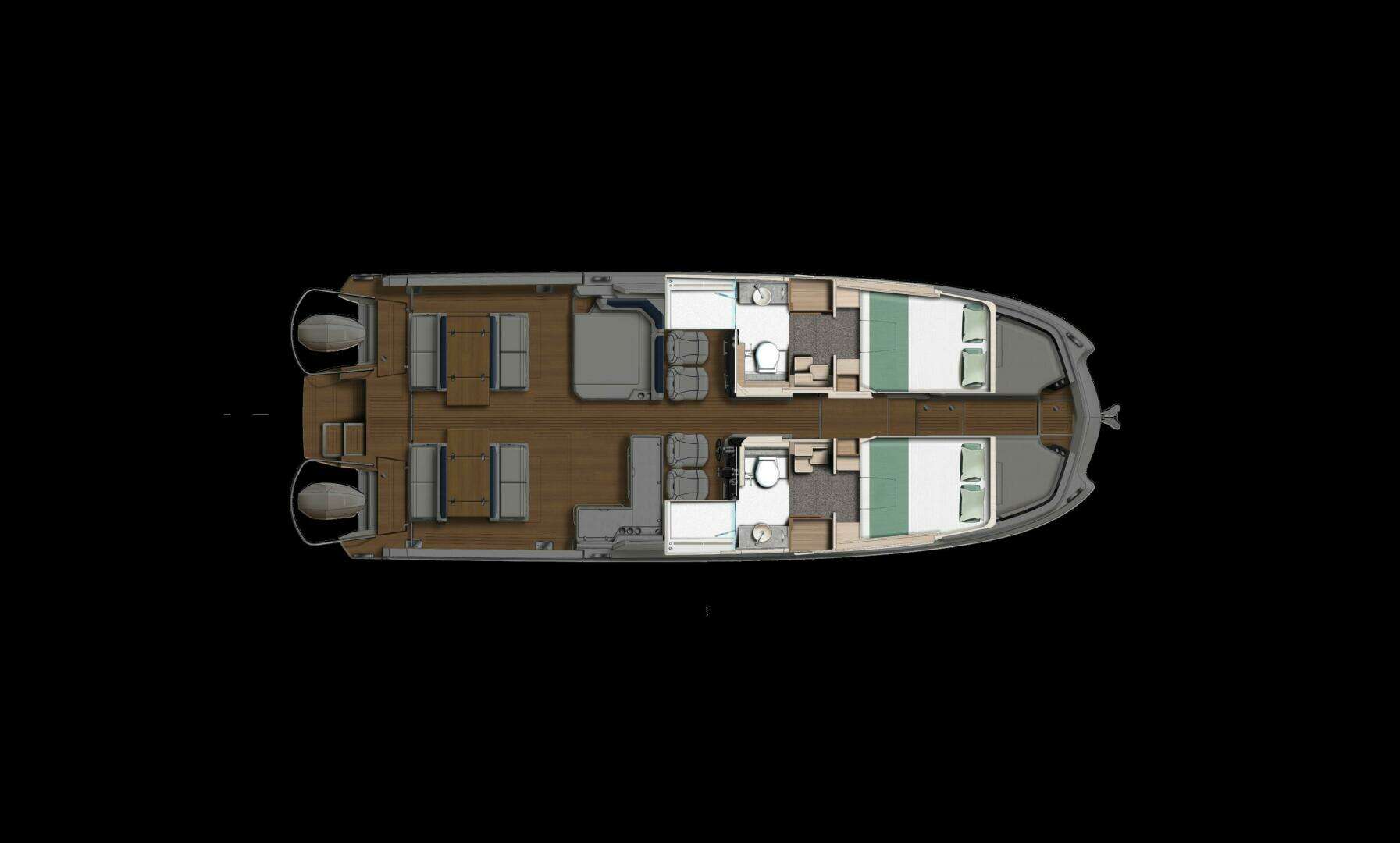 Boy, does she ride! The twin V12 600 hp, combined with the air cushion between the hulls, achieves one of the smoothest rides you will experience. YOT is the power range from Catana Group, the leaders in performance catamarans for over 40 years, with experience that counts.