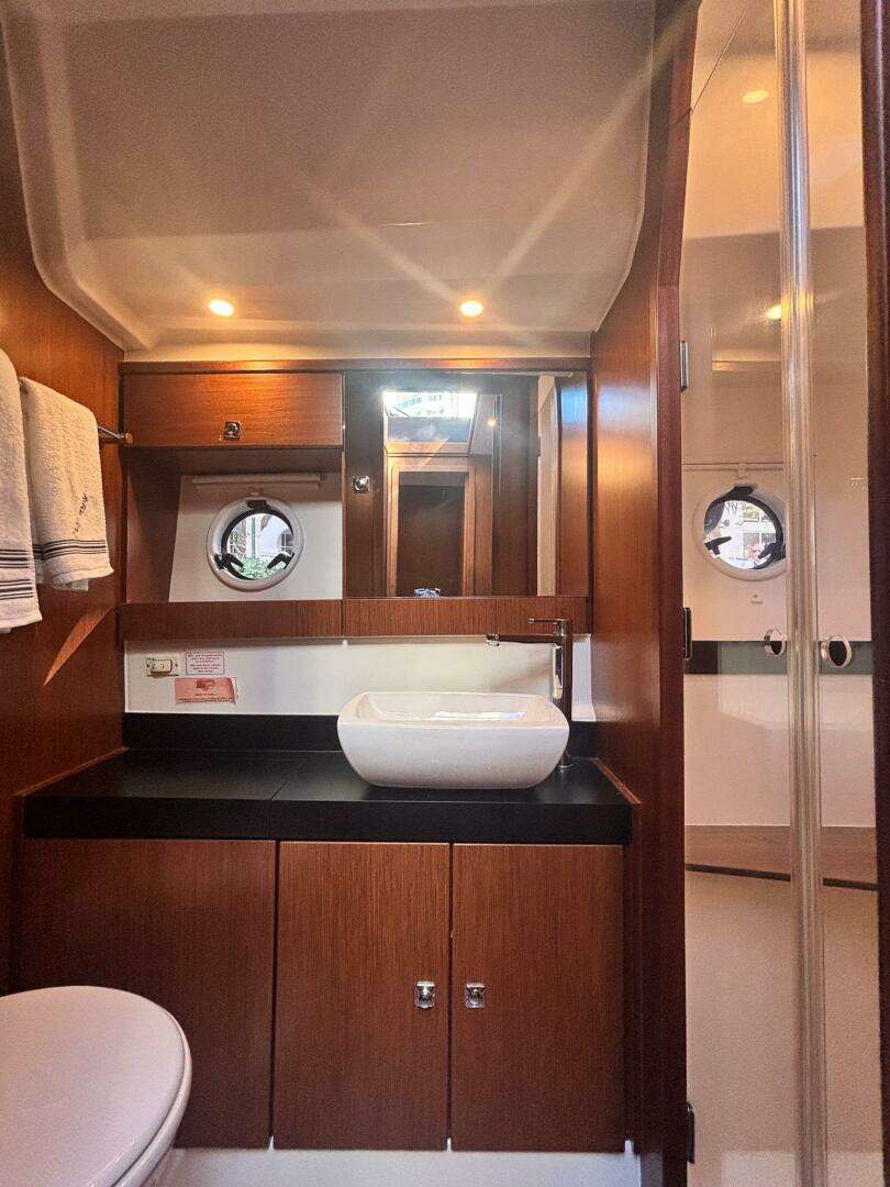 Her three-cabin layout is one of the best in class—bright, open, and thoughtfully designed for entertaining or extended stays aboard. Features include a hydraulic swim platform, sport bridge helm, upgraded Dometic chiller system, and modern interior finishes.