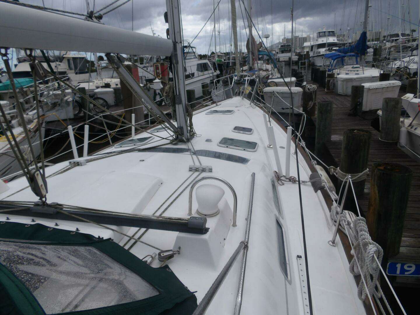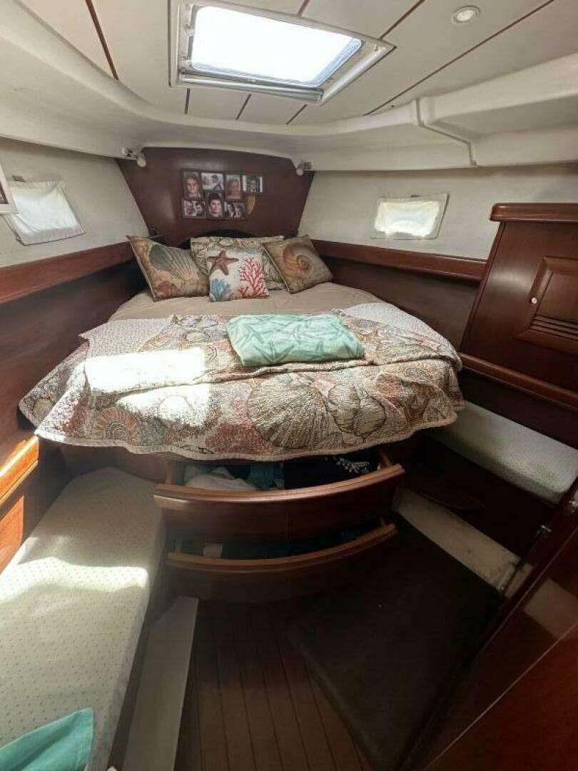 The shoal-draft bulb keel (4’ 9”) allows access to shallower anchorages along the ICW, Chesapeake, and Bahamas while maintaining balanced tracking and stiffness. With the in-mast furling main and roller-furling jib, sail management is straightforward and safe from the cockpit and she is rigged for single hand sailing from the cockpit.