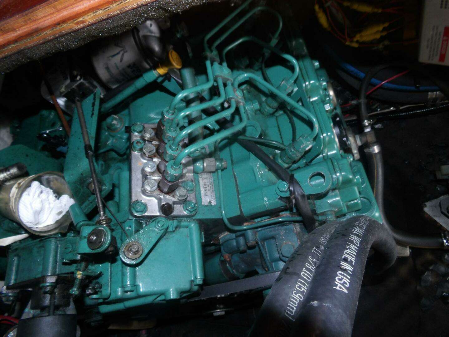 - Volvo D2-55 55 HP freshwater-cooled diesel; shaft drive (shaft replaced 2021) with Flex-O-Fold folding