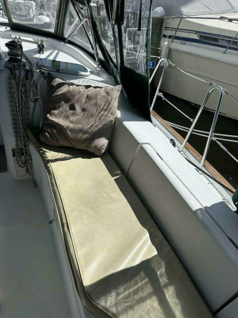 - Bimini, Dodger, with curtains for a fully enclosed cockpit supported by a stainless steel frame (no straps that can stretch). All canvas was restitched and zippers replaced 2024.