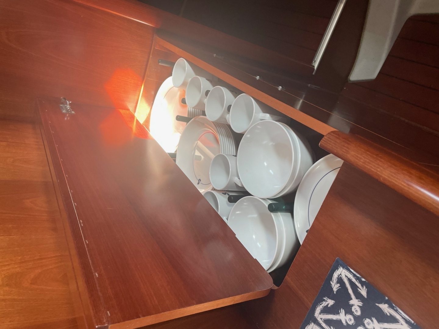 - Top opening dish, plate and cup storage locker