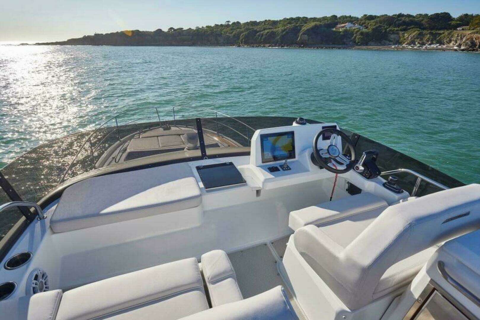The Antares 12 stands out for the remarkable quality of its materials and trims, not to mention its stylish, generous interior spaces. The wheelhouse is a central living space with a panoramic view of the ocean.