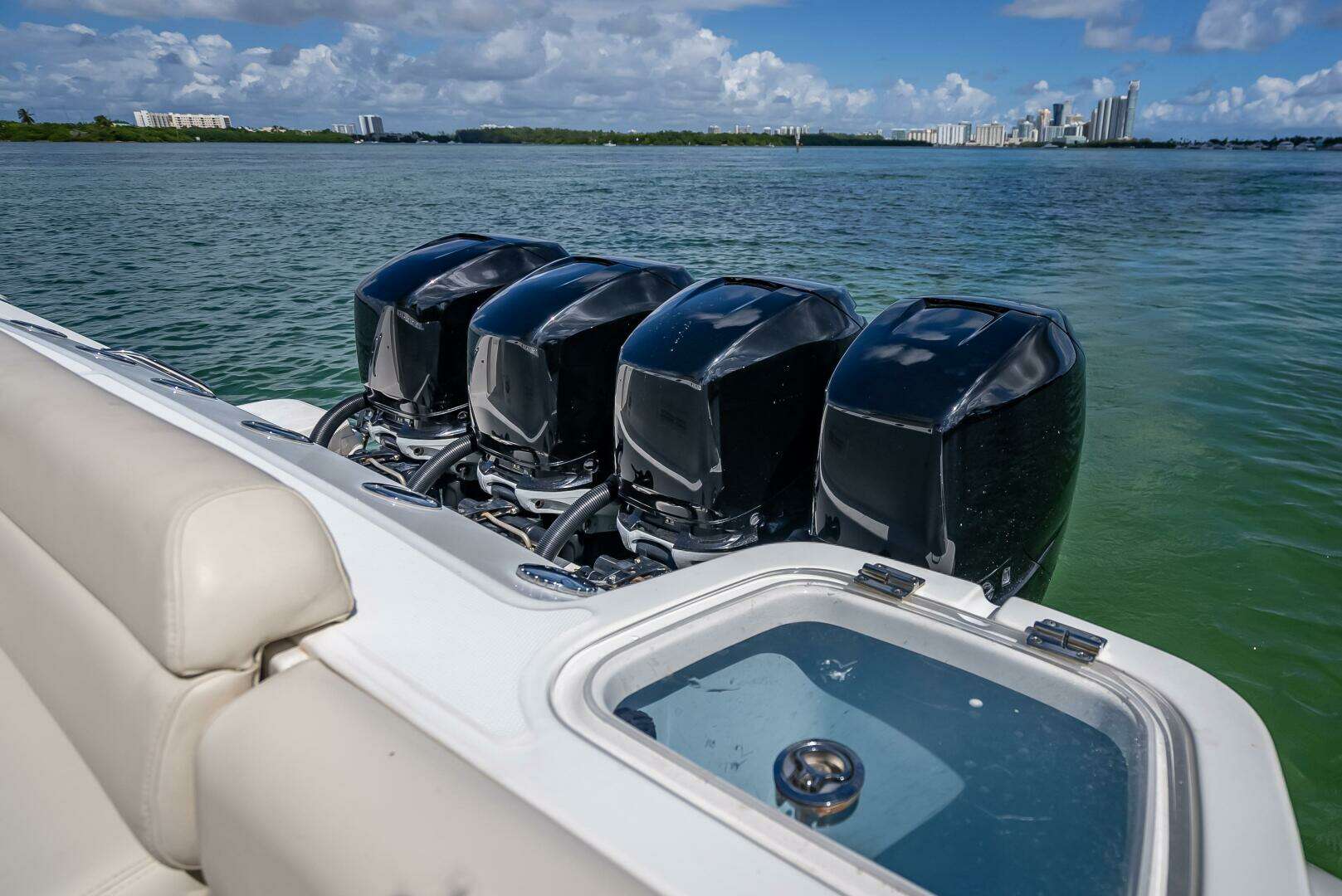 Equipped with quad Mercury 350 Verado engines, this remarkable boat ensures a smooth and exhilarating ride. Glide effortlessly through the waves, feeling the rush of adrenaline as the engines propel you forward. With this incredible power, you're sure to reach your destination with impressive speed and efficiency.