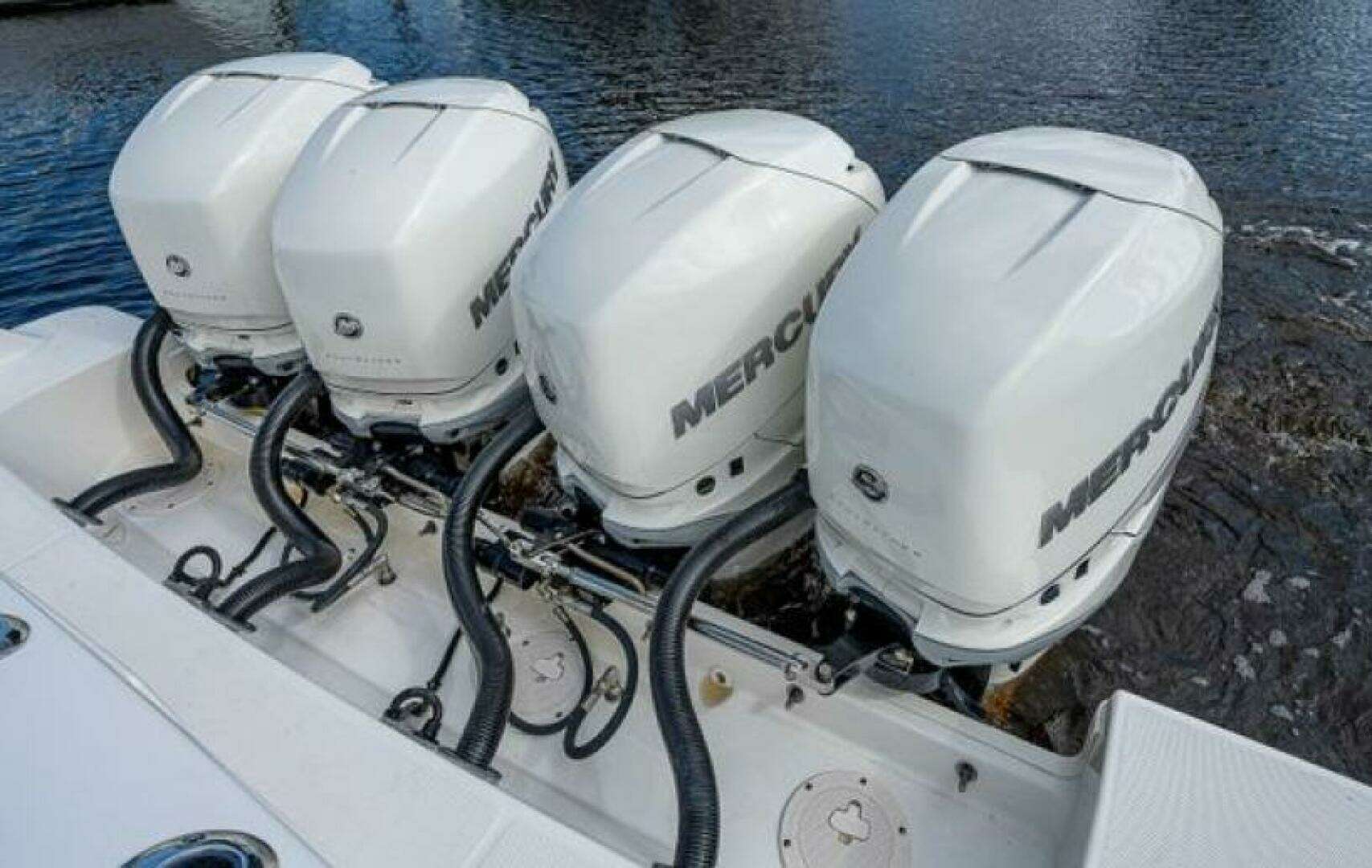 - 400 HP L6 Quad Mercury Verado Four Stroke engines with the upgraded newest style hydraulic power steering - Engines are fully serviced 12.25 with new hydraulic trim caps. Engine lower units are painted with Awlgrip to match the hull.