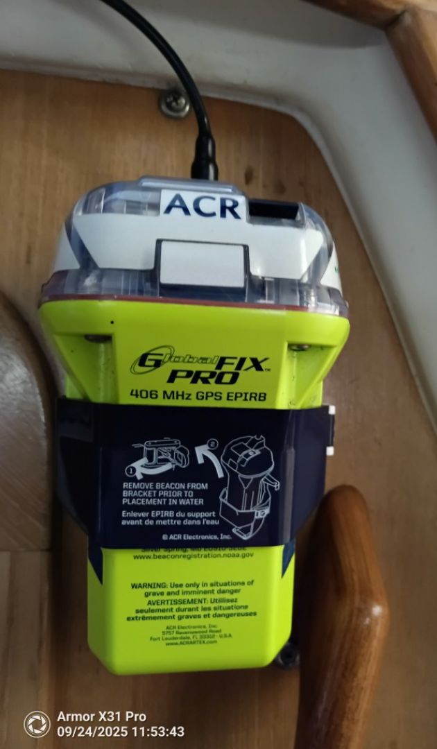 A 9-foot dinghy with a powerful 15 hp two-stroke Yamaha outboard is included and hangs from an integrated davit system on the heavy-duty all-aluminum solar arch.A well-equipped ditch bag, signal flares, warning devices, and an EPIRB are also included.