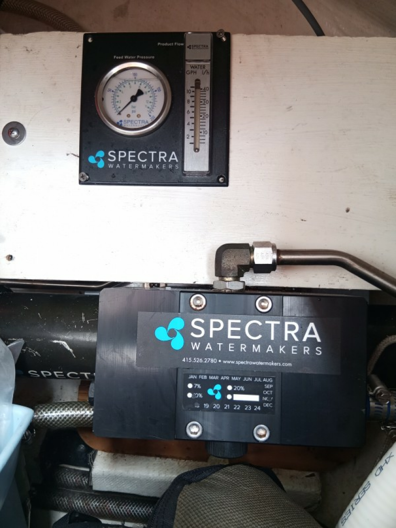 The Spectra watermaker produces approximately 6 gallons per hour.