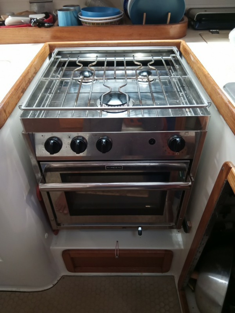The galley stove and Magma grill run off two propane tanks in protected compartments.