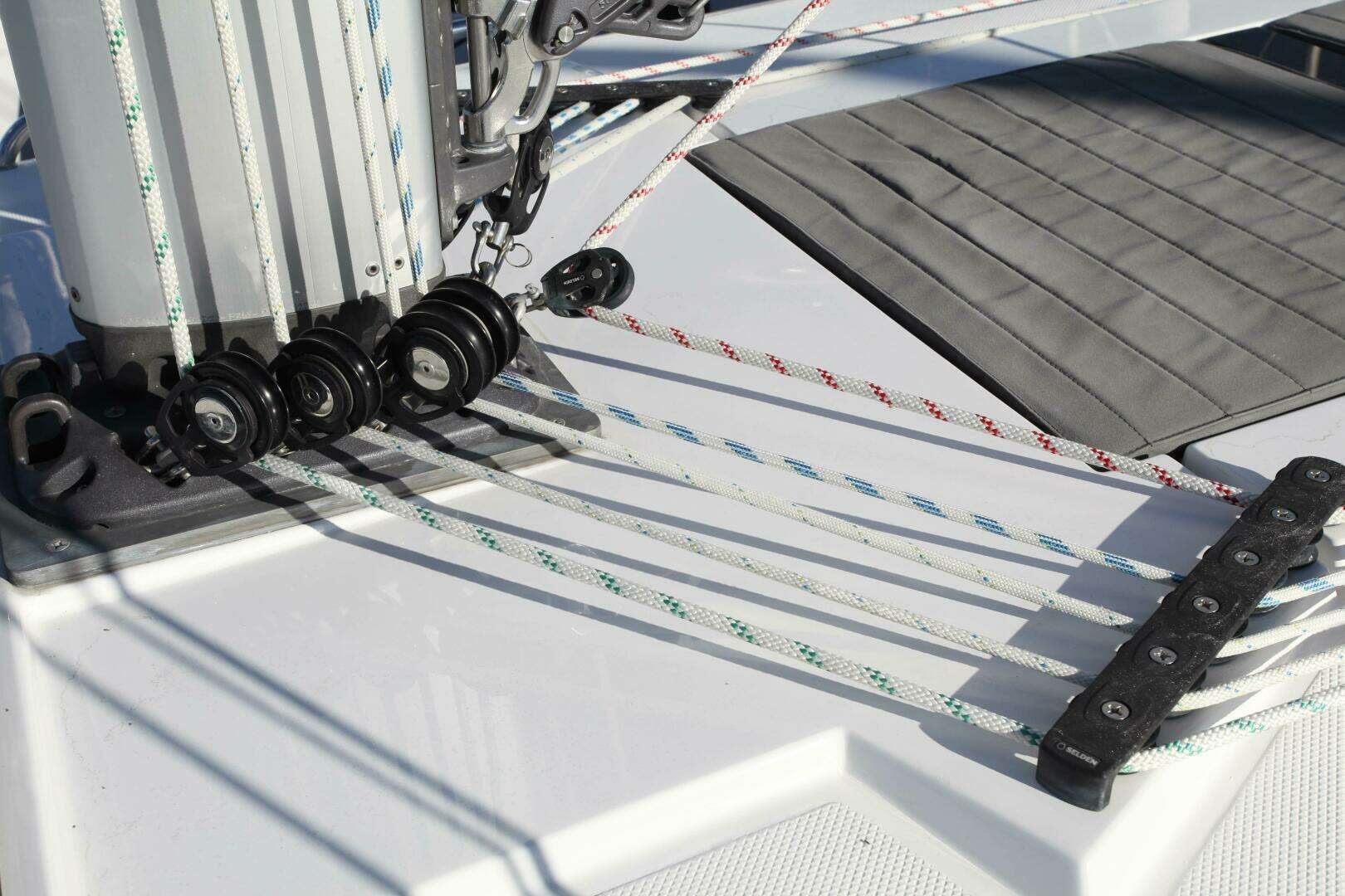 - New Selden mast and rigging featuring "LMP" sections for weight savings aloft, swept spreader design provides closer sheeting angles and easier passage of side decks. SMF and Selbus push button ready.