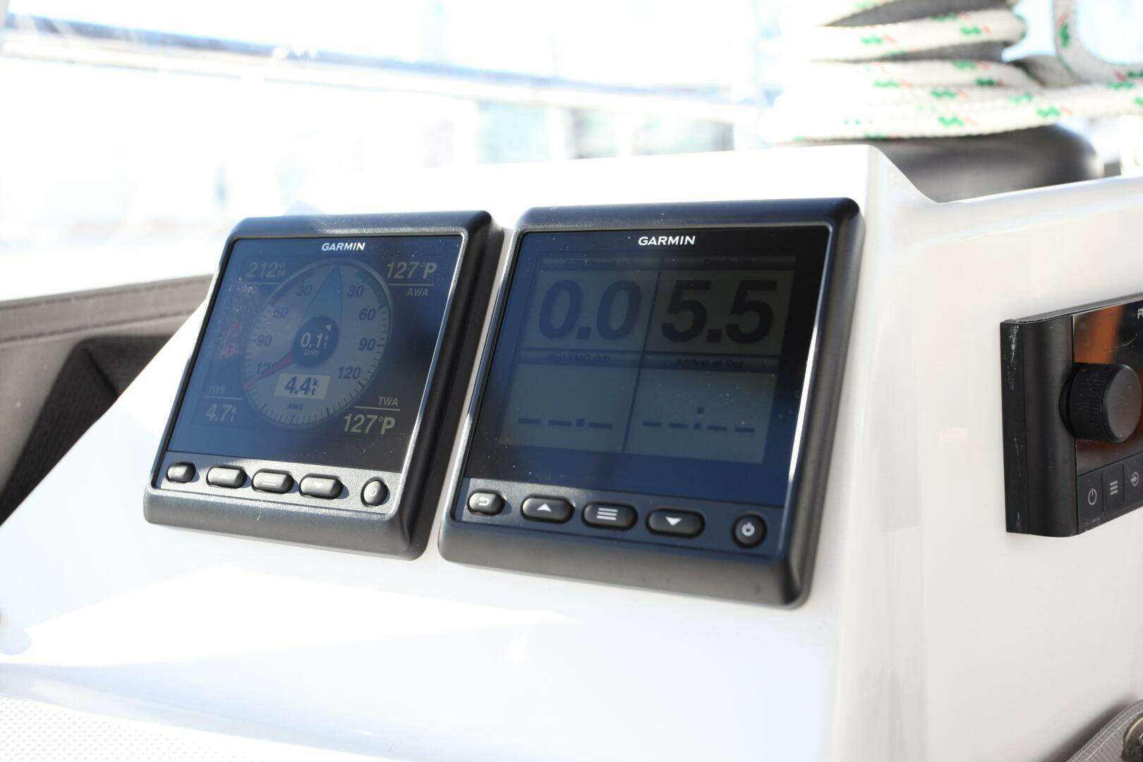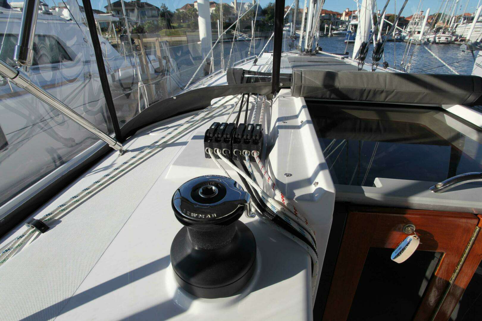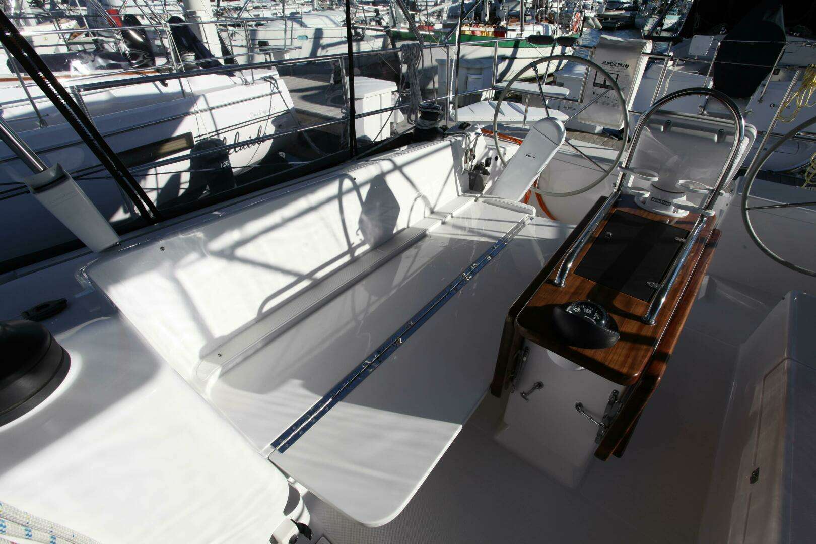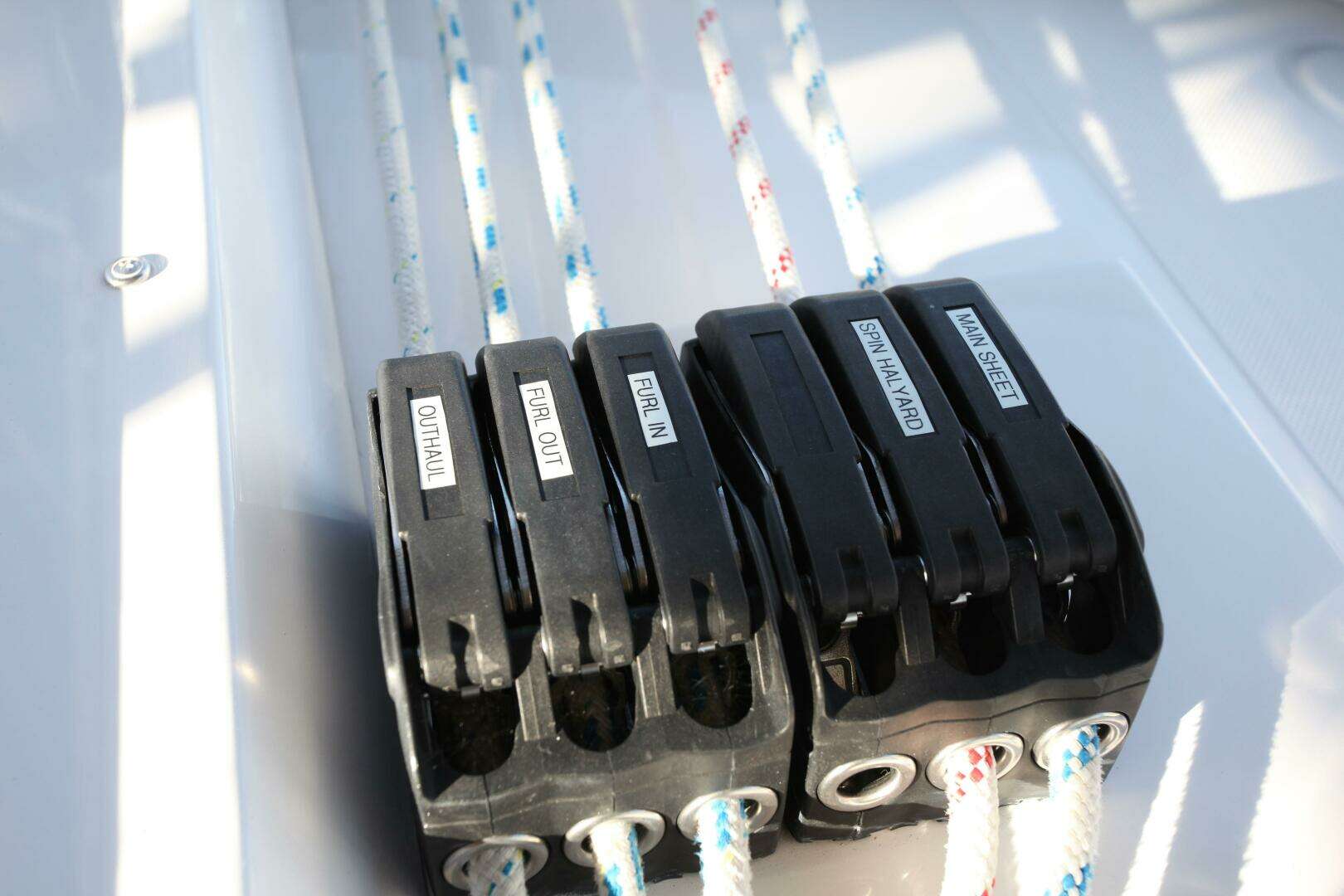 - Jib and mainsheet controls at the helm positions