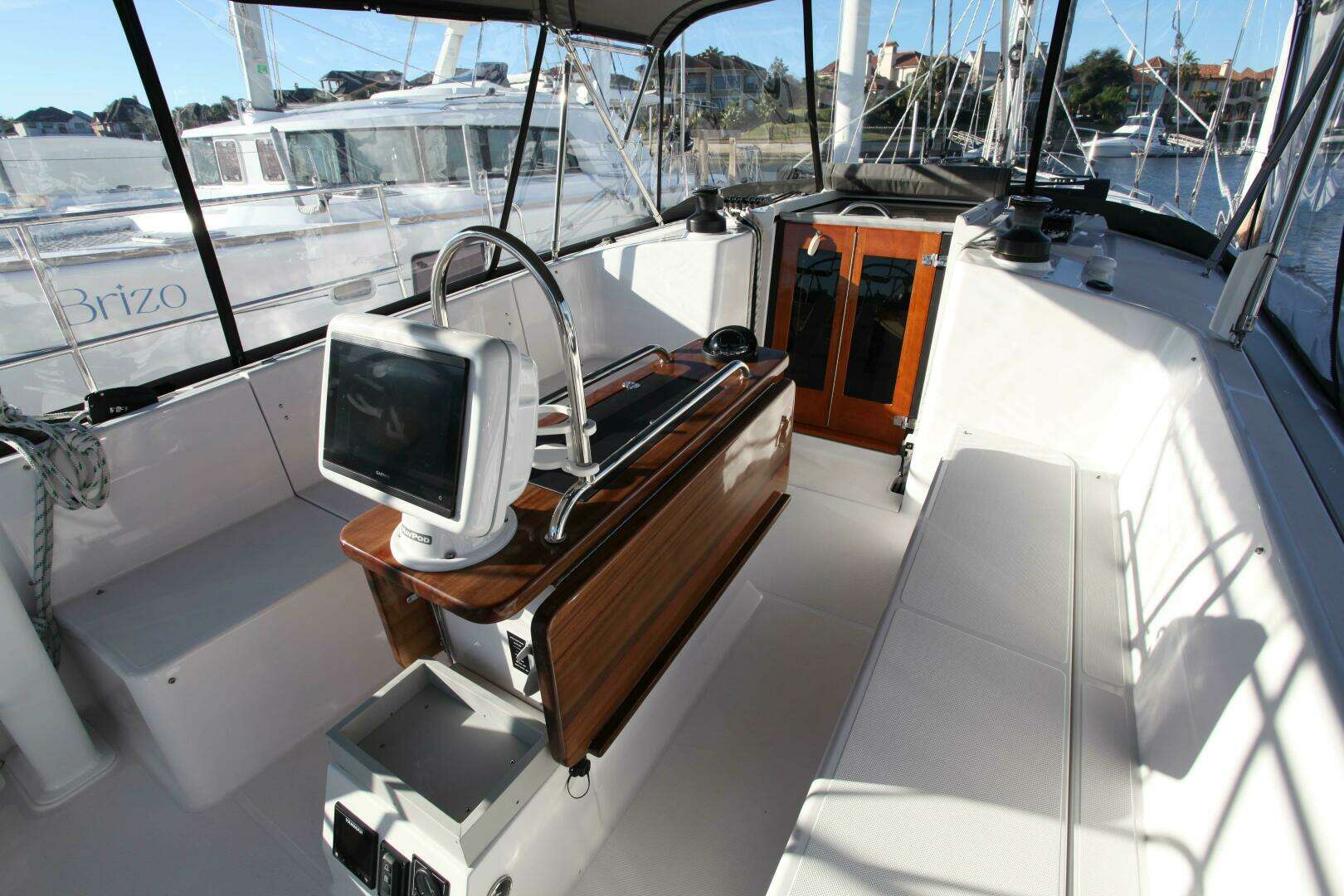 - A cockpit with 6’6” long seats, the starboard seat converts to a double berth or deck lounge