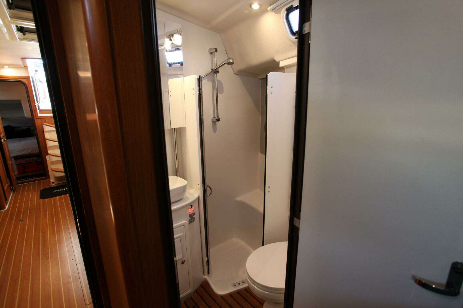 - Slatted Teak Grates on the Sole of the Fore and Aft Heads
