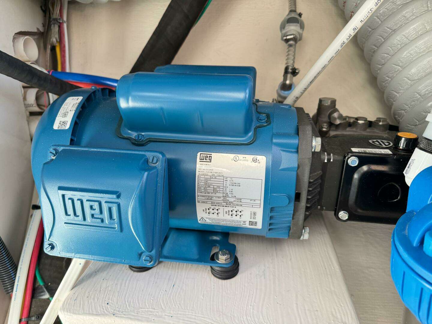 - Central, accessible mechanical space providing excellent access to primary engine, generator, water heater and air conditioners