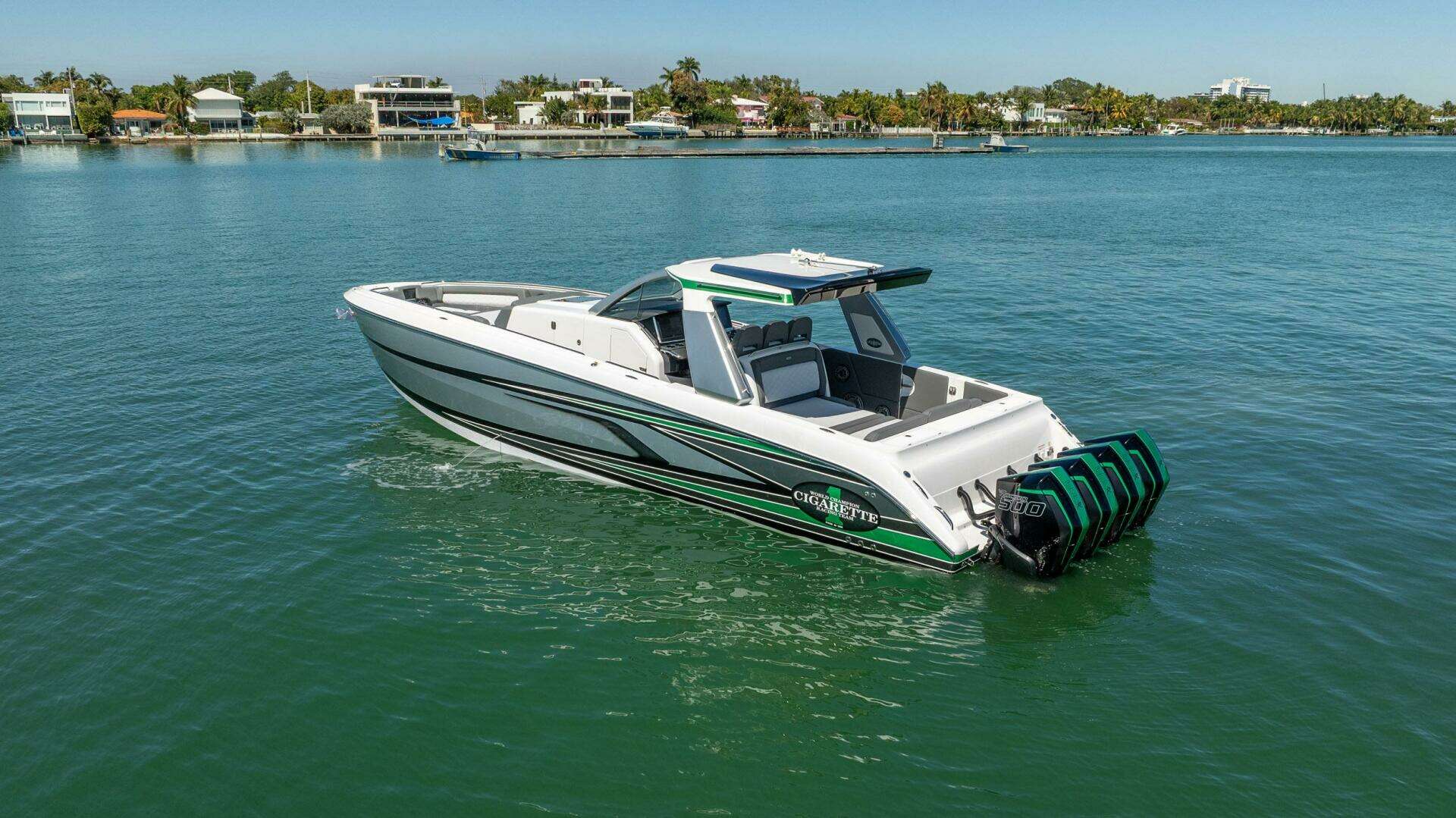 Powered by Quad 500R Mercury Racing Engines, this Auroris delivers blistering speeds while maintaining the refined ride quality that only a Cigarette hull can provide. From the custom iconic paintwork to the Garmin-integrated glass cockpit and the premium JL Audio system, every inch of this vessel reflects "no-compromise" engineering.