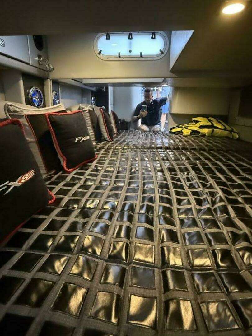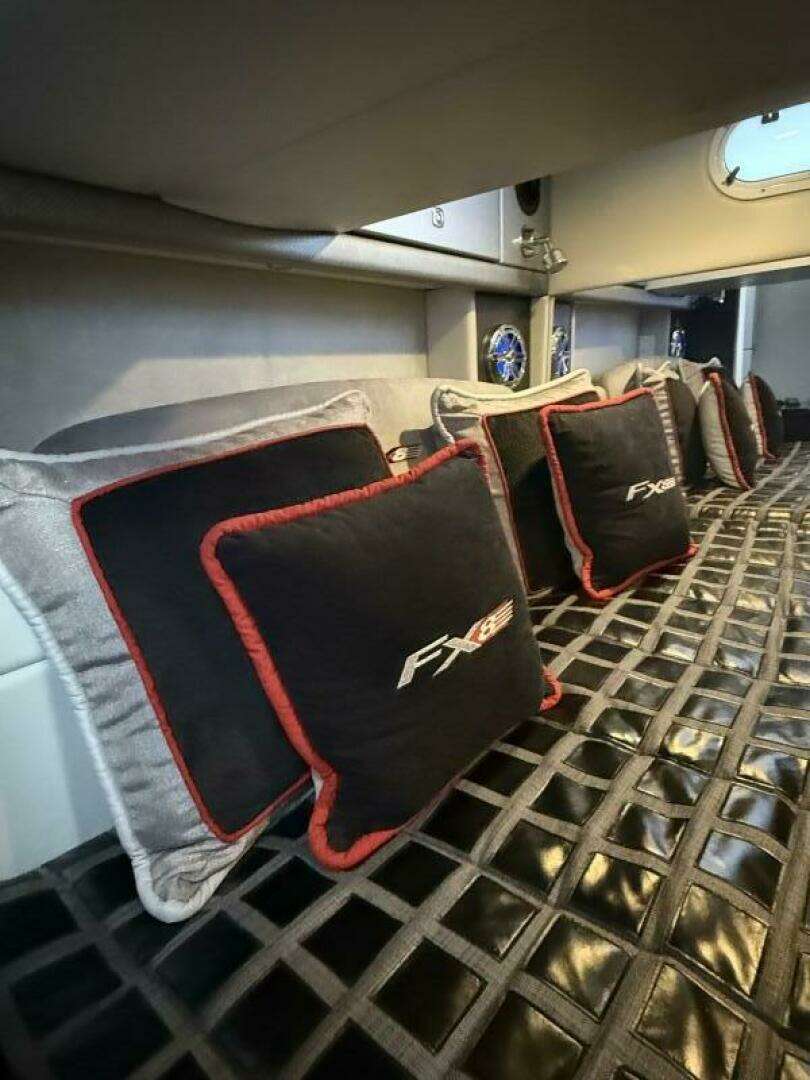 - Aft-facing sun lounge w/ FX logo, LED downlighting, converts to full sunpad