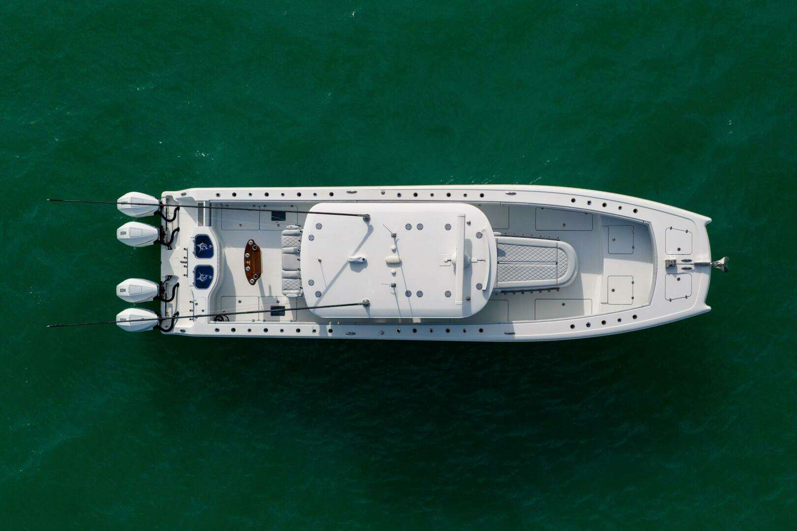 “Turks Islands” is a beautifully appointed 2022 Freeman 42LR finished in Whisper Gray with matching upholstery and piping. Powered by quad Mercury V8 300 outboards with approximately 967 hours and equipped with Optimus joystick steering, this vessel delivers the legendary ride, efficiency, and fishability Freeman is known for.