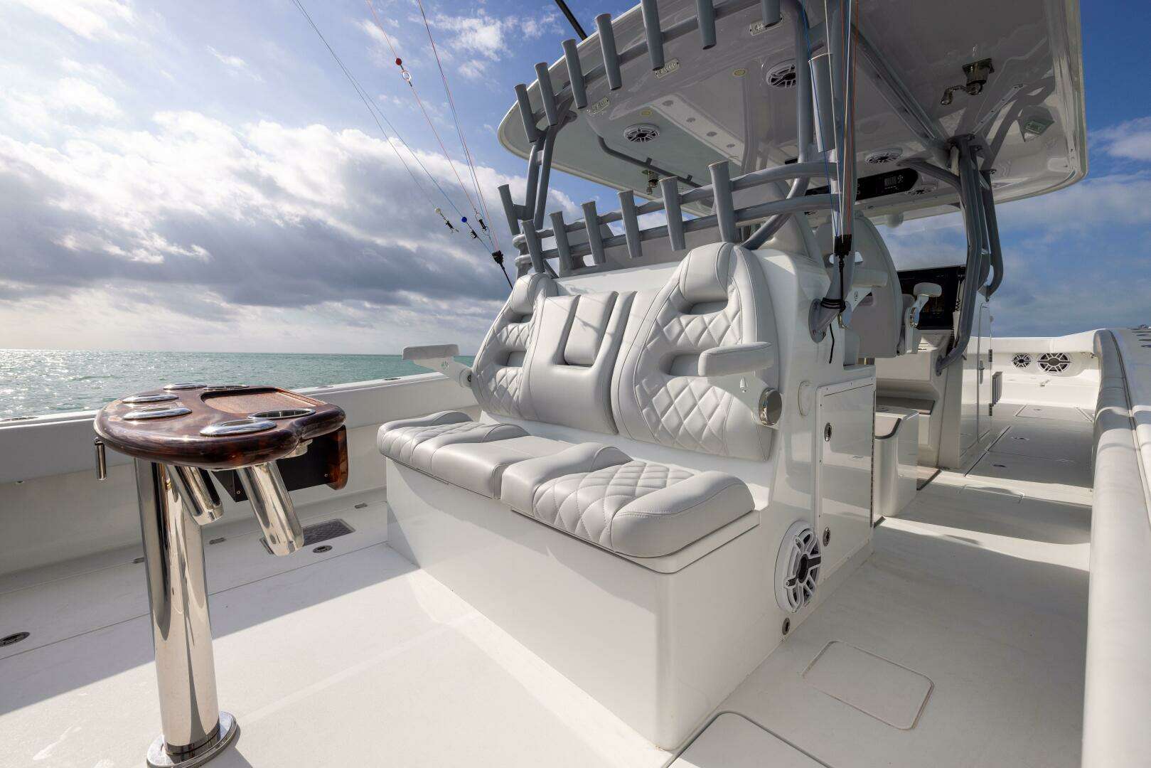 With dual-row Lebroc seating, an XL hardtop, premium JL Audio sound system, and extensive lighting throughout, this Freeman delivers the perfect balance of serious offshore capability and comfort.