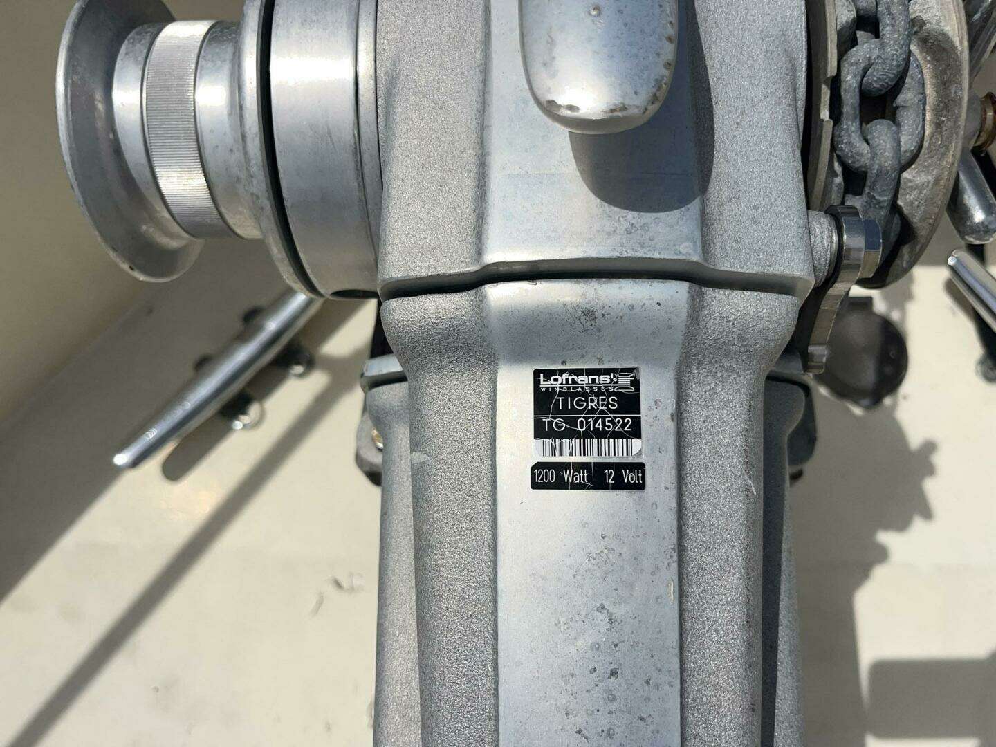 - Lofrans 12v windlass (rebuilt 2025) with foot controls on the bow, and controls at both helm stations