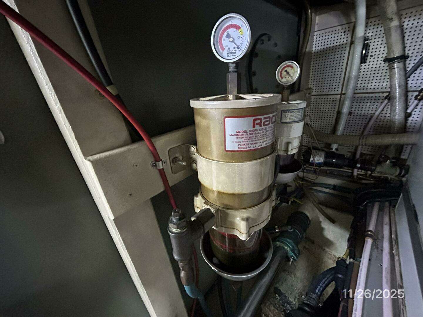 - Racor 500MA fuel filter with a vacuum gauge for the generator