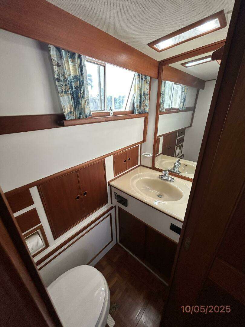 Millie offers a full-beam master stateroom aft with a centerline queen size berth and a separate head and a separate shower; and a guest stateroom forward with a v-berth and an ensuite head.