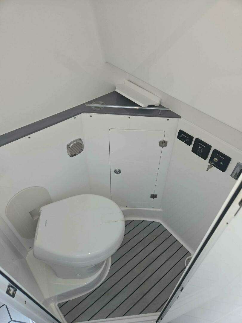 · Cabin – Enclosed Head Compartment with Ceramic Macerating Starboard side, Electric Flush Toilet with pump out and Pull Up Shower.
