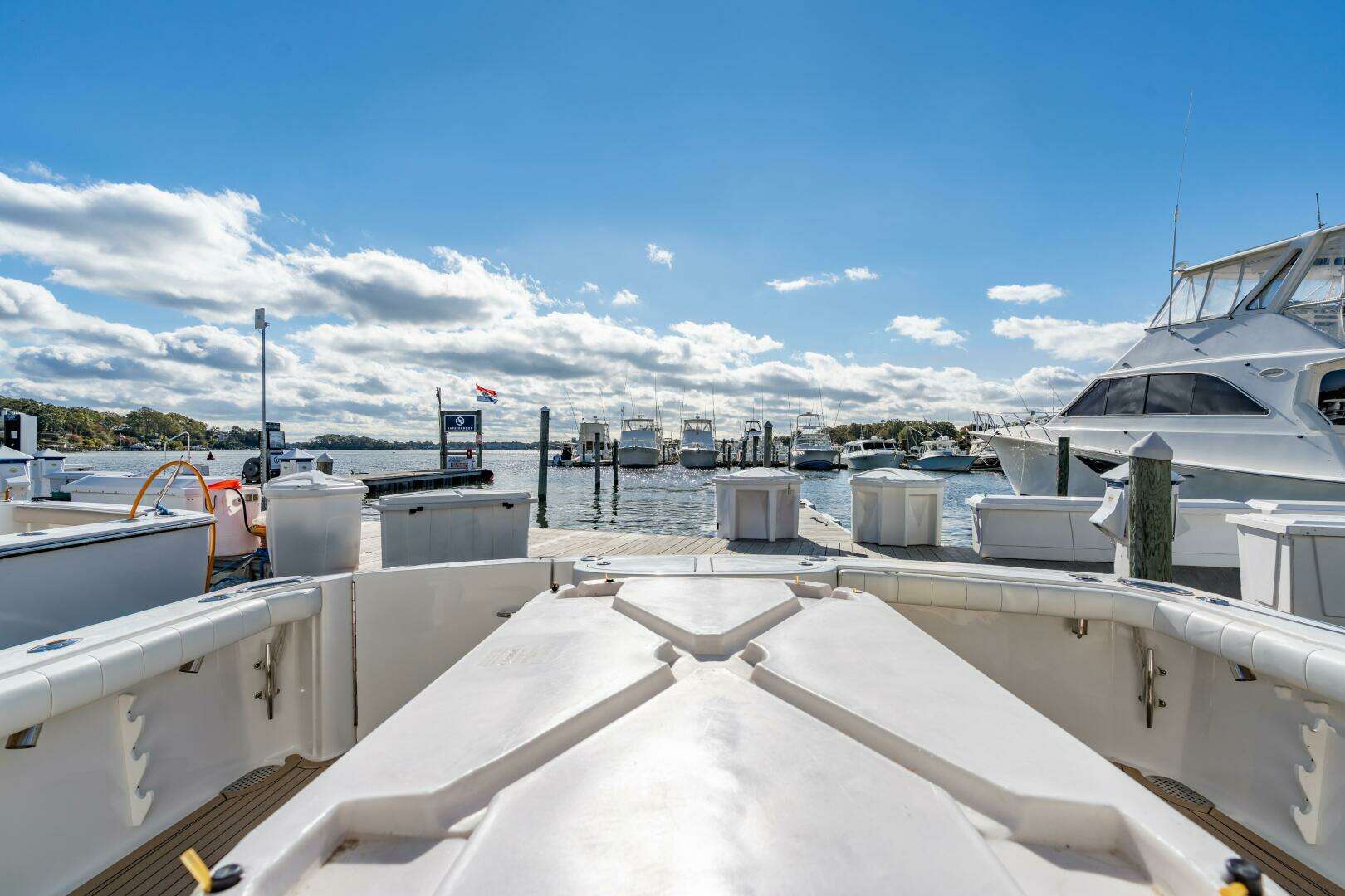One of the nicest 42' Henriques ever built! Reliable Cummins QSM11's with extended warranty, Seakeeper, Mezzanine Seating, Great Electronics, Beautiful Custom Interior and the Henriques signature giant Cockpit and fish boxes make this one an awesome canyon runner!