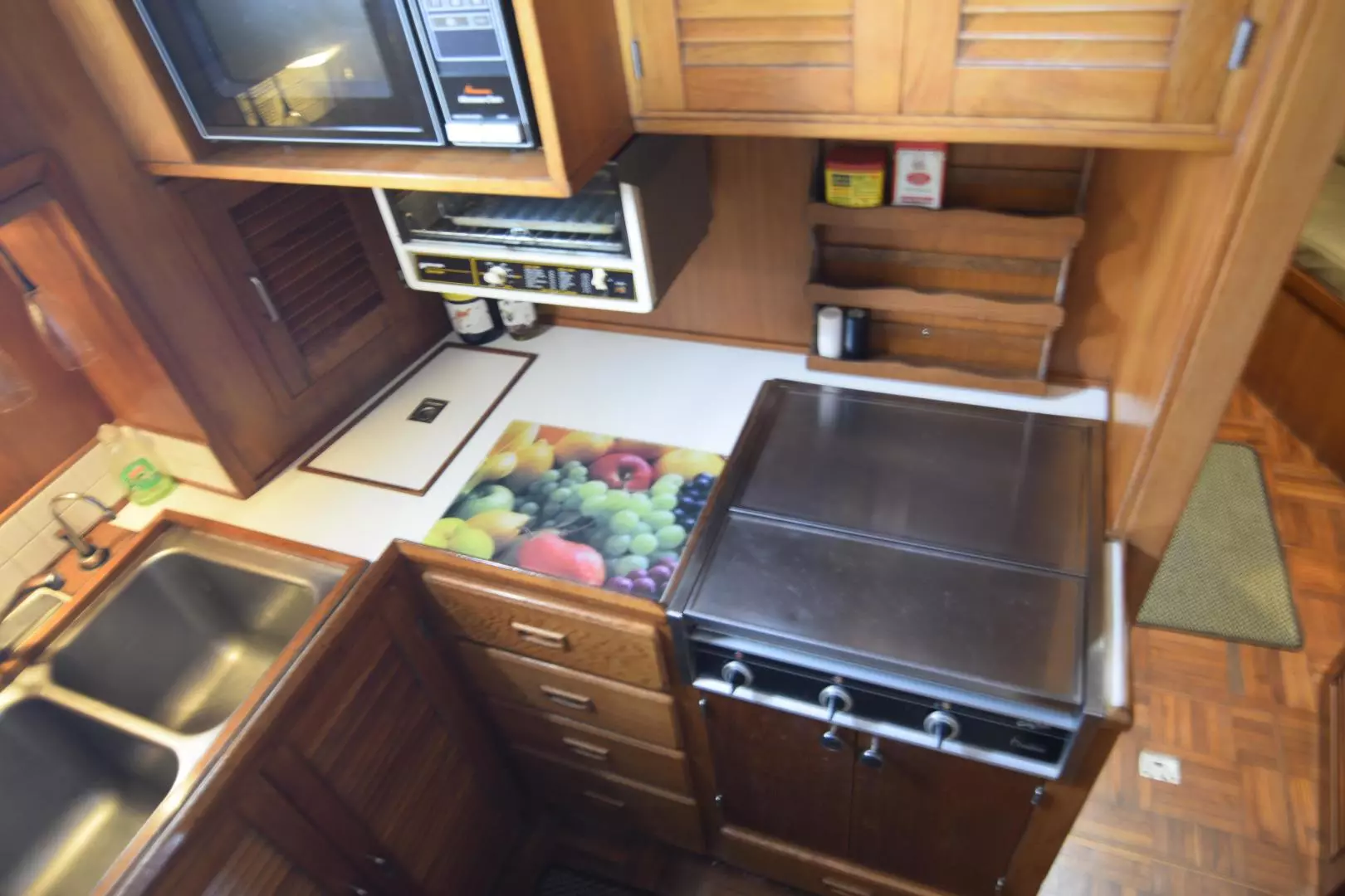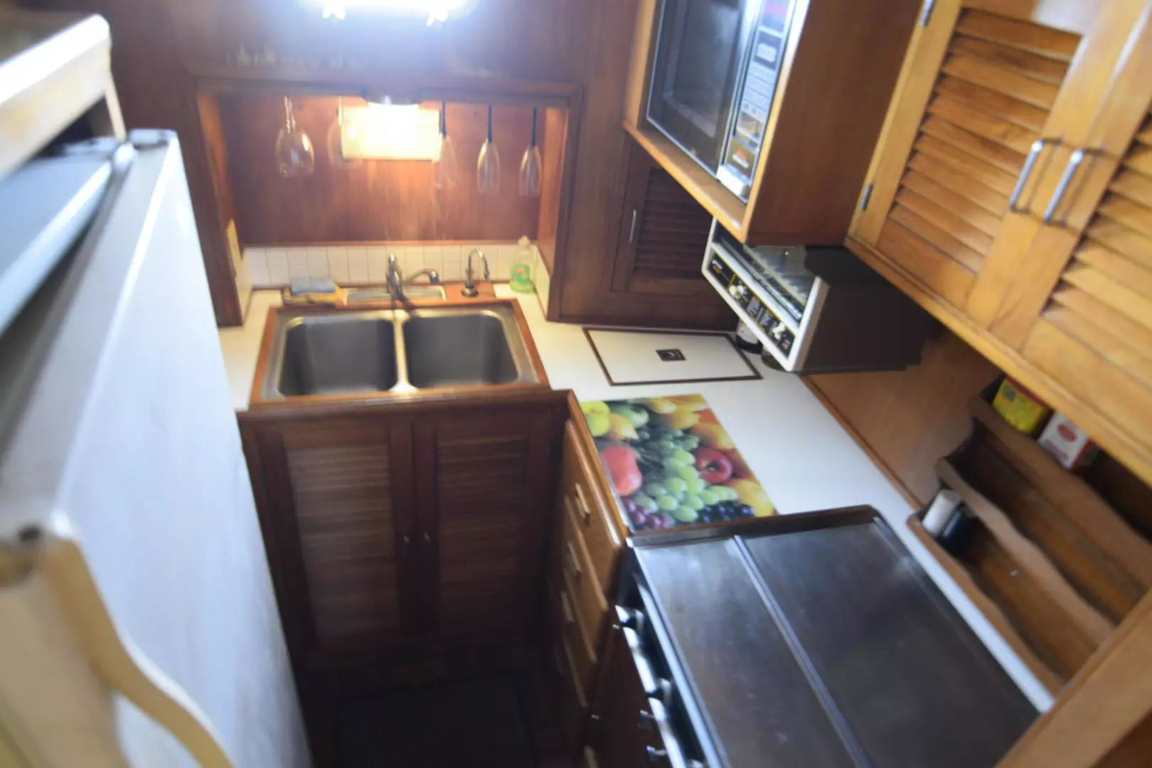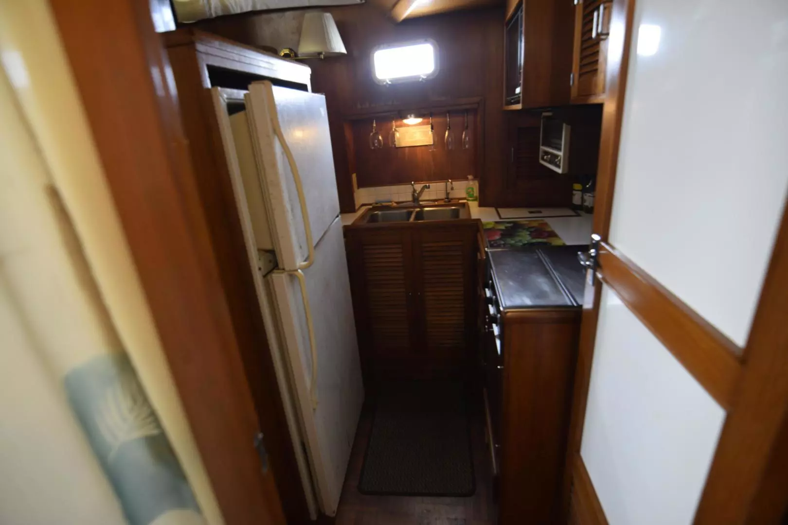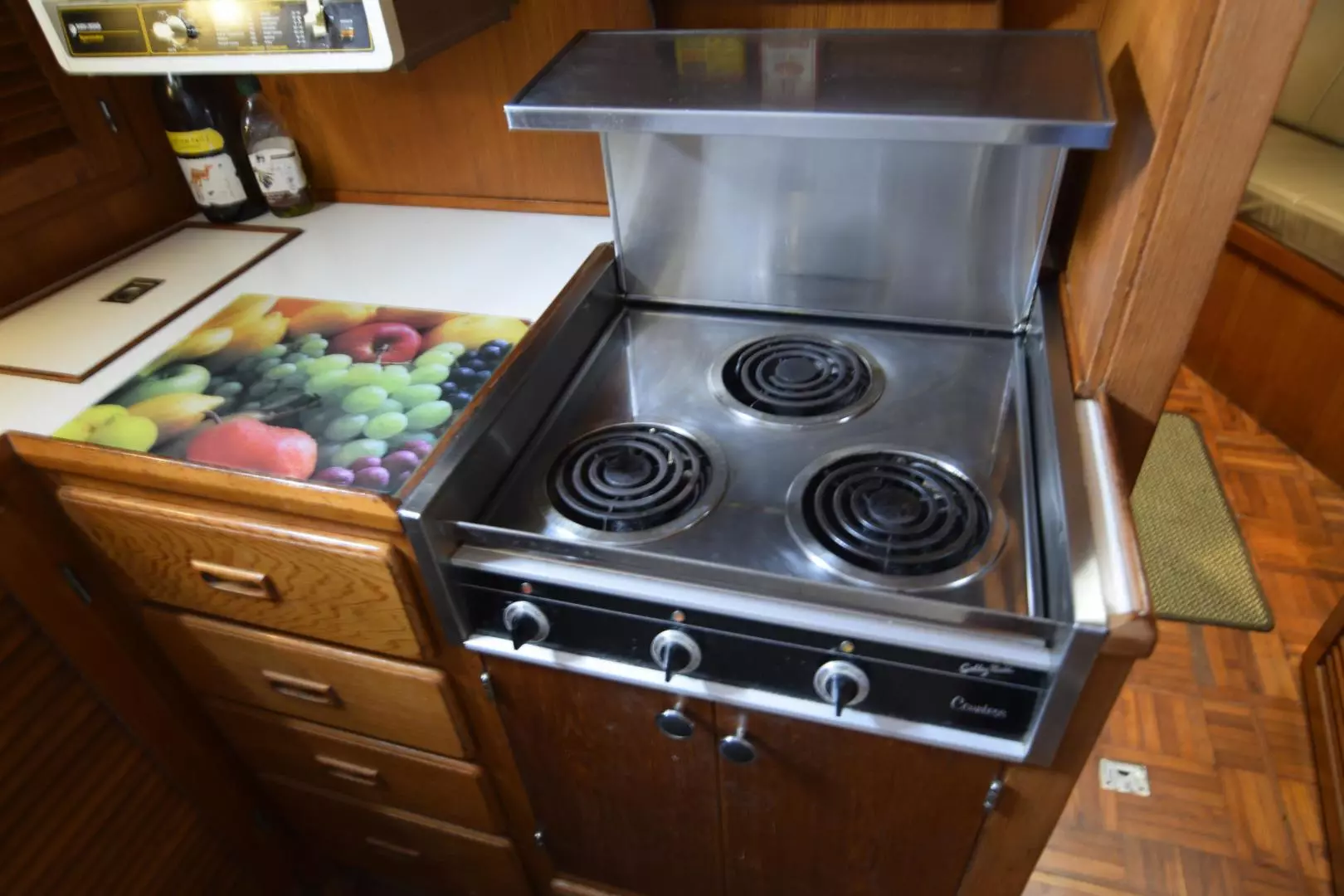 - Galley is located Port Side Forward of Salon down 3 Steps3 Burner Electric Stove Top